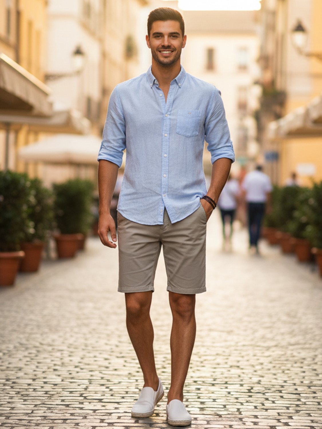 A Bermuda de Sarja Masculina Ogochi da linha Essencial é a escolha perfeita para quem busca estilo, versatilidade e conforto no dia a dia. Confeccionada em algodão, poliéster e elastano, proporciona toque macio, ótima durabilidade e liberdade de movimento. O modelo possui dois bolsos frontais faca, dois bolsos traseiros, cós com passantes, fechamento por zíper e botão, além do logo da marca bordado na lateral, garantindo autenticidade e sofisticação ao visual. Ideal para compor looks casuais de verão, pode ser combinada com camisetas, camisas, chinelos ou sapatênis, tornando-se uma peça coringa no guarda-roupa masculino.
