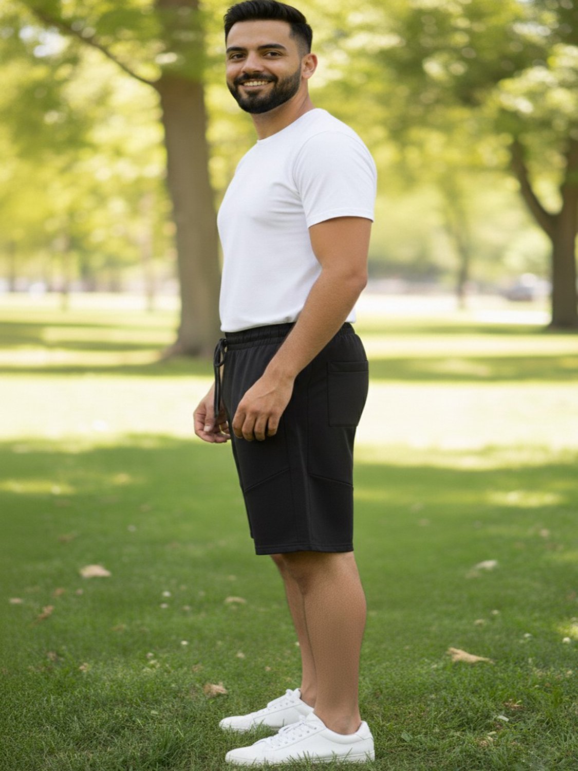 - Detalhes Modernos: Inclui um prático bolso posterior (traseiro) e recortes na parte lateral, que adicionam um toque de estilo e conferem um visual mais dinâmico à peça.