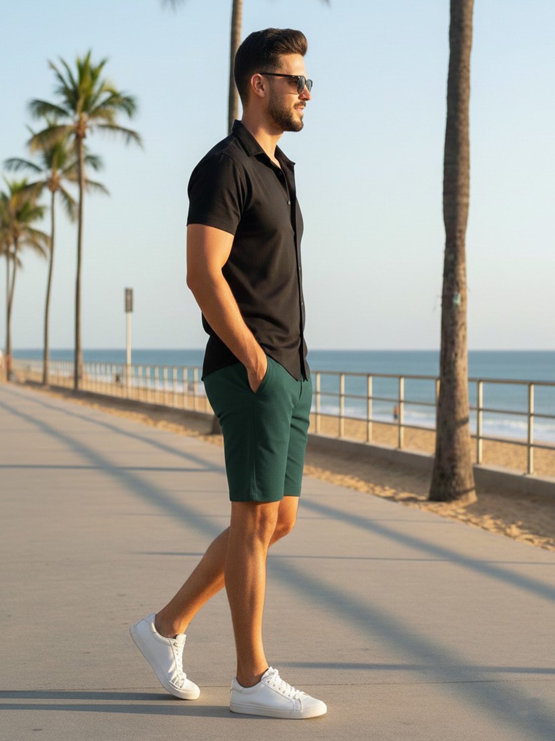 Sua composição de 65% poliéster e 35% algodão proporciona leveza, durabilidade e conforto térmico, tornando a bermuda perfeita para o uso diário, passeios ou ocasiões casuais mais alinhadas. Possui bolsos laterais funcionais e bolsos traseiros com fechamento por botão, garantindo praticidade e segurança para pequenos objetos.