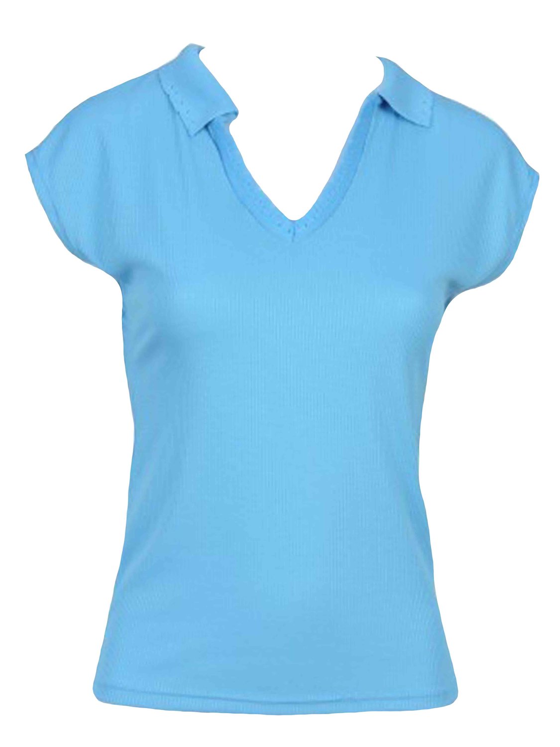 Blusa canelada feminina confeccionada em poliéster, viscose e elastano. Apresenta modelagem muscle tee, porém essa peça é mais ajustada ao corpo, possui decote V com detalhe em ribana e gola polo. Uma peça coringa no guarda-roupa das mulheres, podendo compor um visual despojado, até mesmo, mais sofisticado.