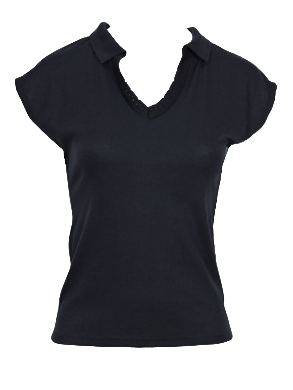 Blusa canelada feminina confeccionada em poliéster, viscose e elastano. Apresenta modelagem muscle tee, porém essa peça é mais ajustada ao corpo, possui decote V com detalhe em ribana e gola polo. Uma peça coringa no guarda-roupa das mulheres, podendo compor um visual despojado, até mesmo, mais sofisticado.