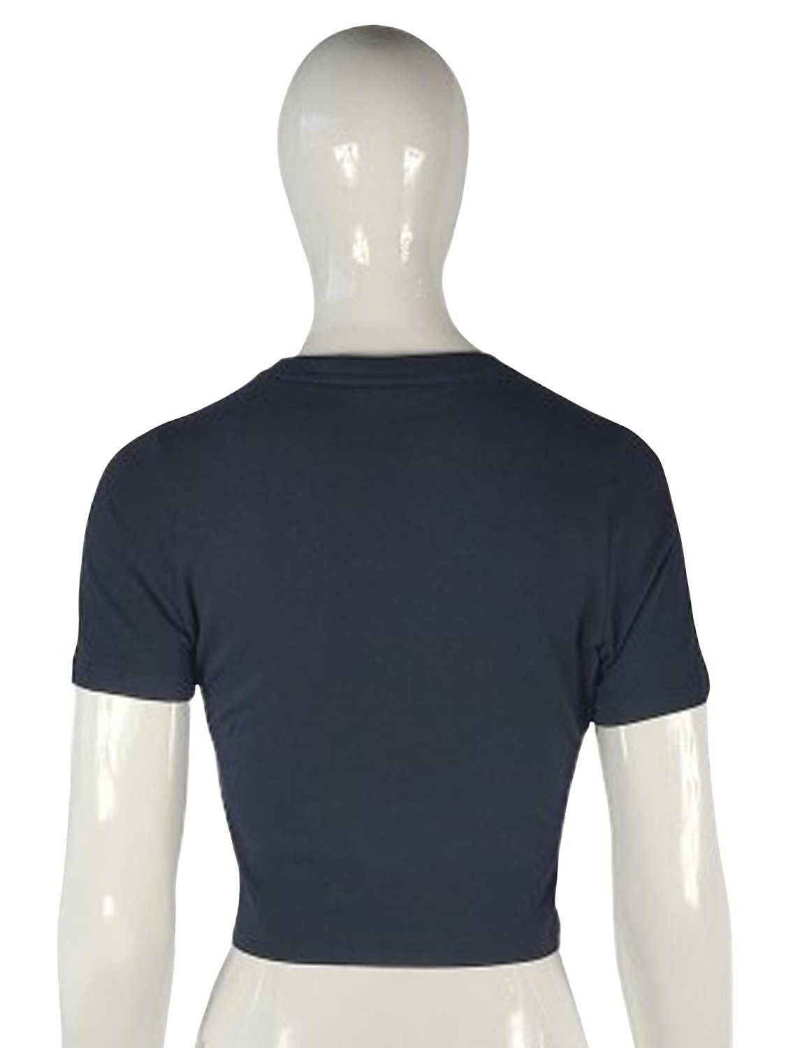 Blusa cropped feminina confeccionada em malha de algodão com elastano. Modelagem slim, ajustada ao corpo, com gola careca em ribana e manga curta. Produto ecológico com certificado Oeko-Tex, que testifica o não uso de químicos nocivos na sua fabricação. Possui logo Fila Letter bordado na manga esquerda.