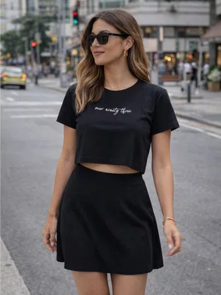 Com modelagem cropped, que possui comprimento mais curto, a peça valoriza o visual e combina facilmente com shorts, saias, calças jeans ou peças de cintura alta, criando produções casuais e cheias de personalidade. Seu design simples e moderno permite diversas combinações, sendo uma ótima escolha para passeios, encontros ou momentos de lazer.
