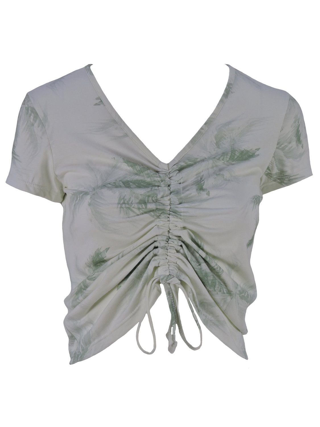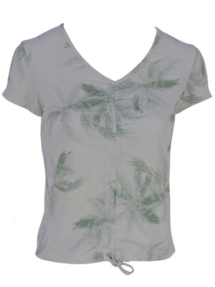 Blusa Manga Curta Feminina Adulto Estampada V559M Vila Flor Creme E Verde Água
