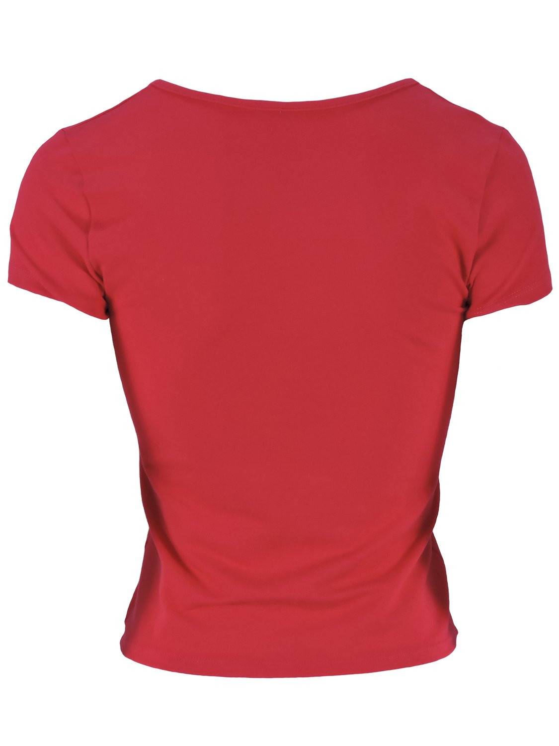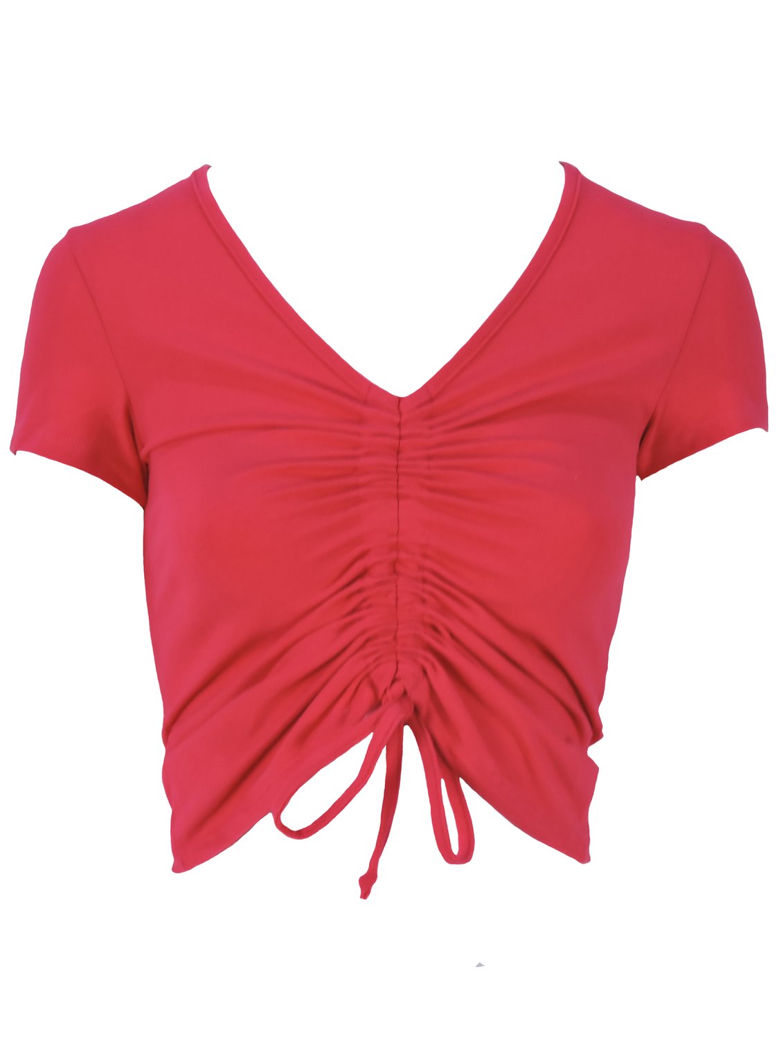 Blusa manga curta feminina adulto. Confeccionada em cotton ,85% algodão. Possui túnel frontal que permite ajuste no comprimento, podendo ser usada como cropped ou como blusinha de comprimento padrão. Blusa justinha e muito prática.