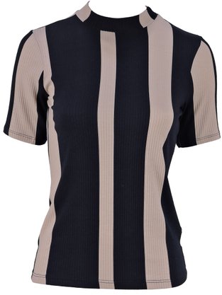 Blusa Manga Curta Feminina Adulto Listrado Gola Alta V561M Vila Flor Bege E Marinho