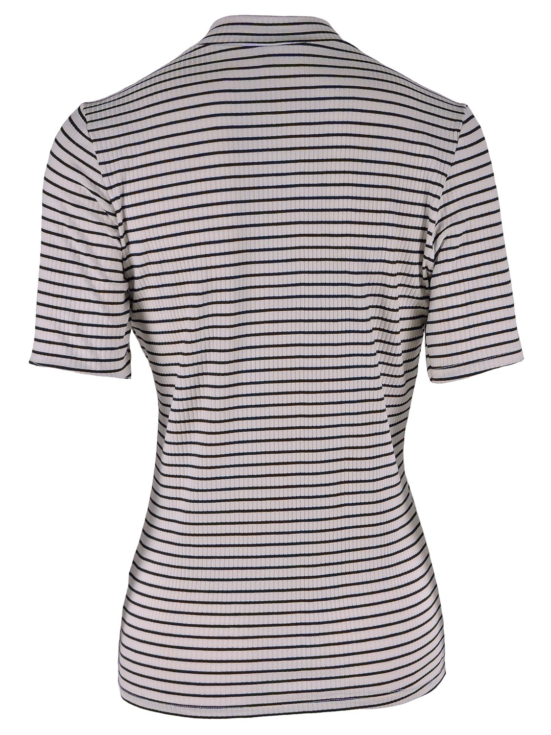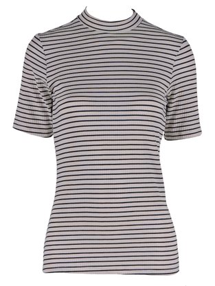 Blusa Manga Curta Feminina Adulto Listrado Gola Alta V561M Vila Flor Creme E Marinho