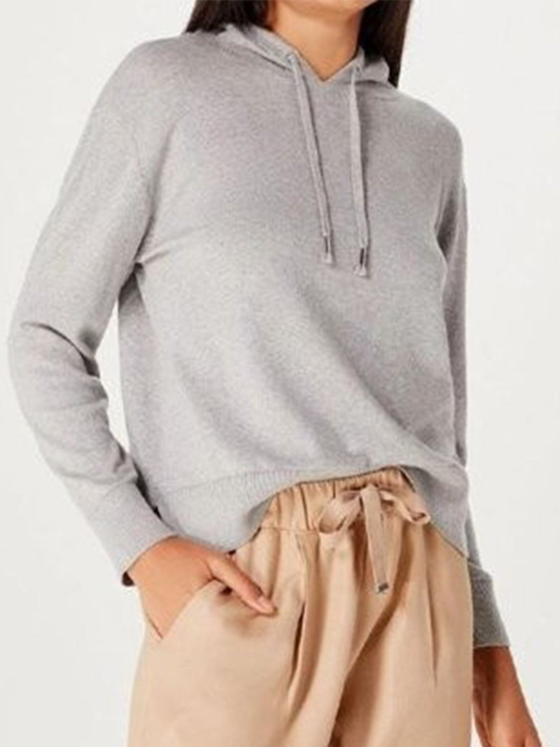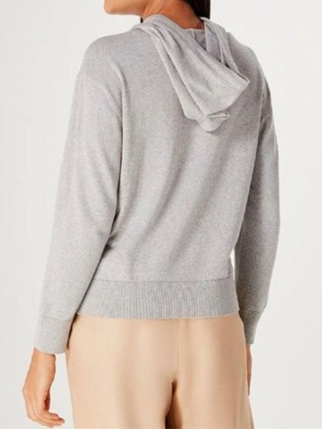 Blusão Feminino Adulto Com Capuz Tricô Liso K4KB Hering Cinza Mescla
