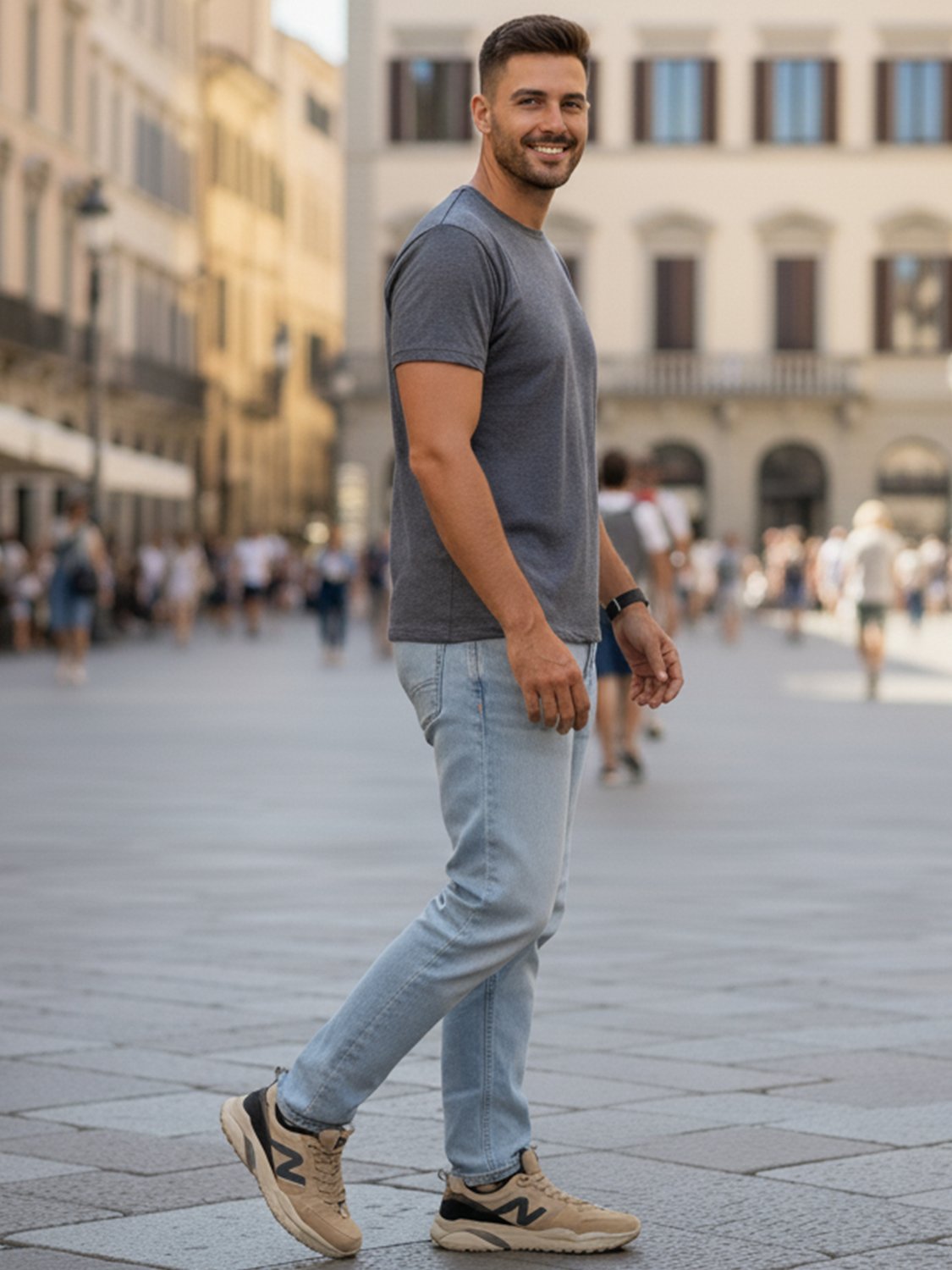 - Visual moderno com jaqueta jeans ou moletom em dias mais frios