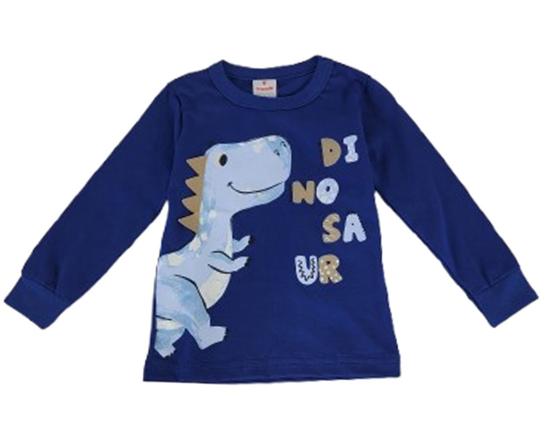 Camiseta Infantil Masculina 55925 Brandili. Confeccionada em malha macia, possui gola redonda, manga longa com punho e estampa encantadora de dinossauro com aplique interativo, que adiciona textura e diversão ao look. Com um designe moderno, que oferece liberdade para jogar, brincar e curtir cada momento. Combine com jeans ou bermudas para criar um look descontraído e cheio de atitude.