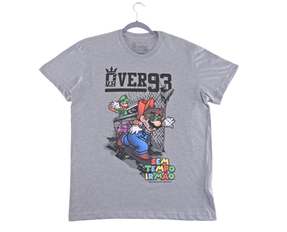 Camiseta Manga Curta Masculina Adulto Estampa Mario e Luigi 124211049 Over Mescla