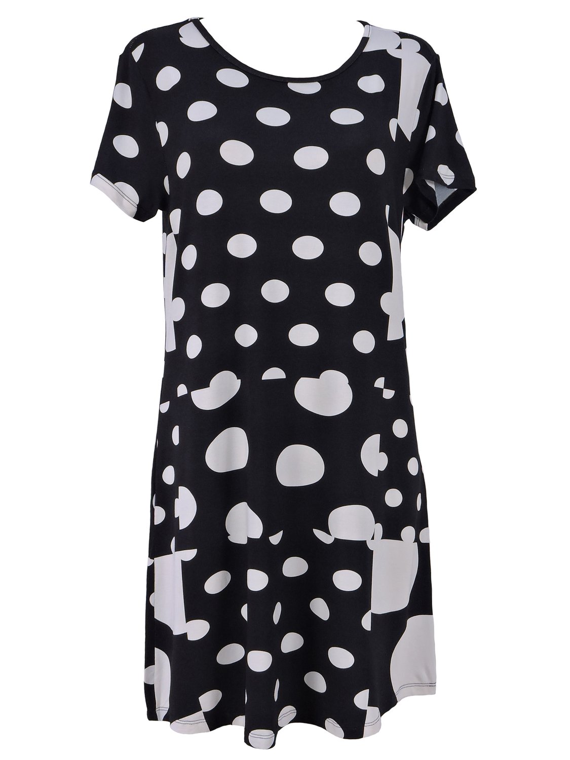 Camisola Manga Curta Feminina Adulto Com Estampa Bolinhas V506M Vila Flor Preto e Branco