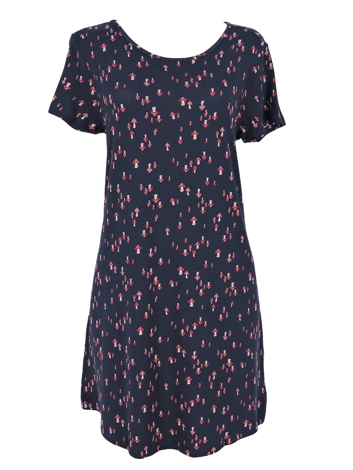 Camisola manga curta feminina adulto, confeccionada em malha com base em viscose que é super confortável, fresquinha e facilita a transpiração. Possui estampa rotativa de cogumelo ,decote redondo ,modelagem ampla e soltinha.