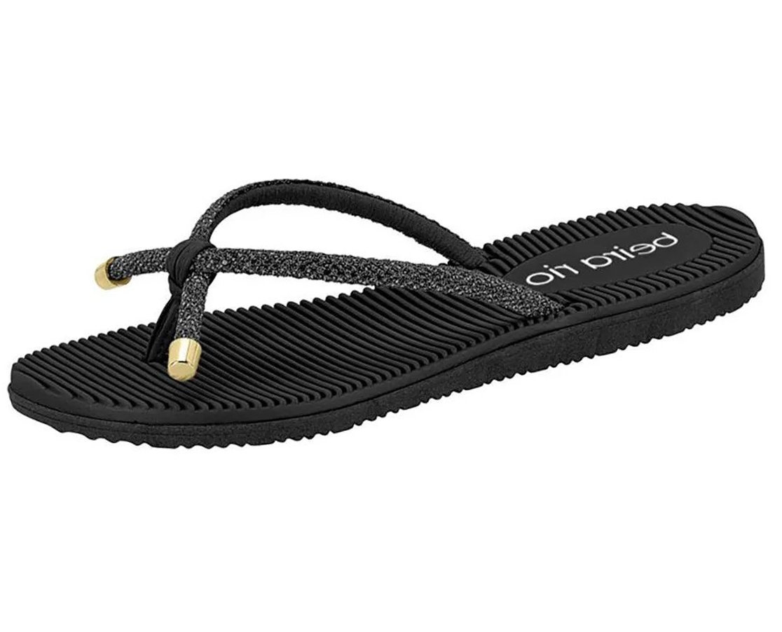Chinelo Feminino Adulto Tiras Com Strass 8395.227 Beira Rio Preto e Grafite