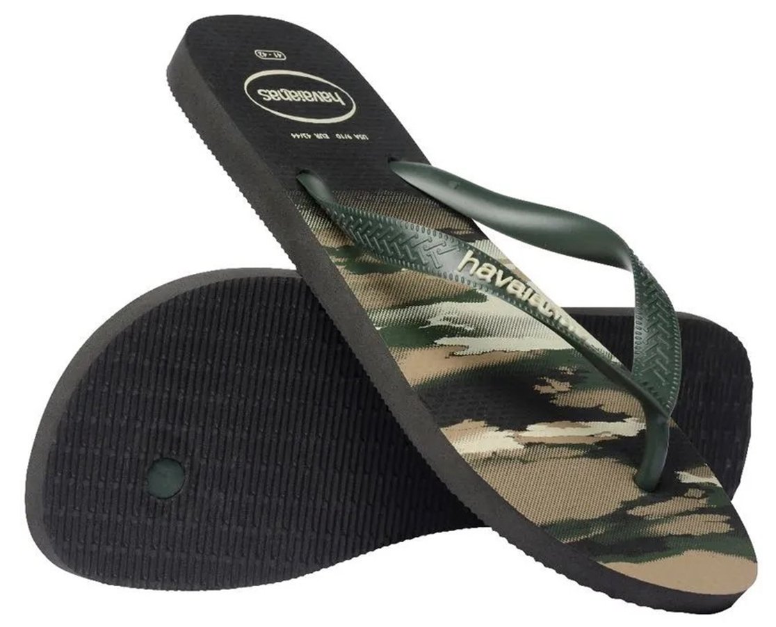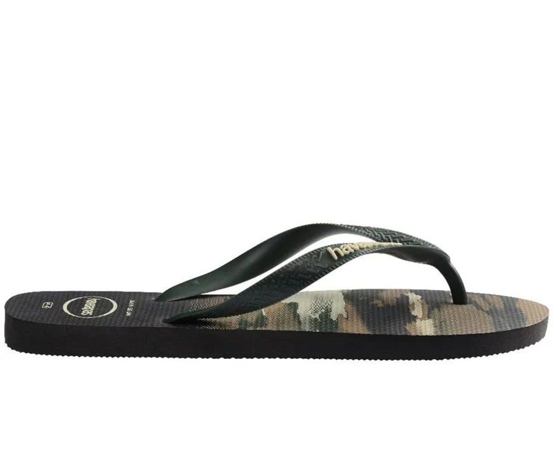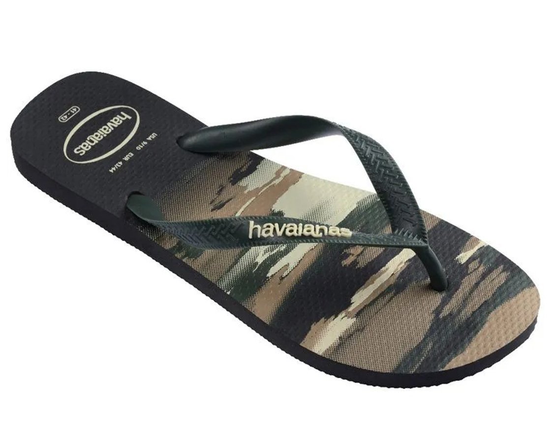 Chinelo Masculino Havaianas Top Camuflada Preto e Verde Olive