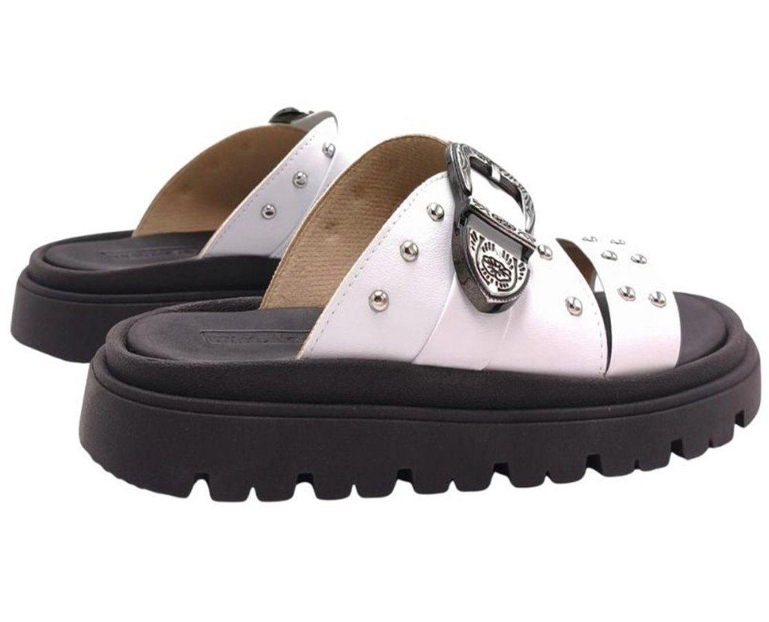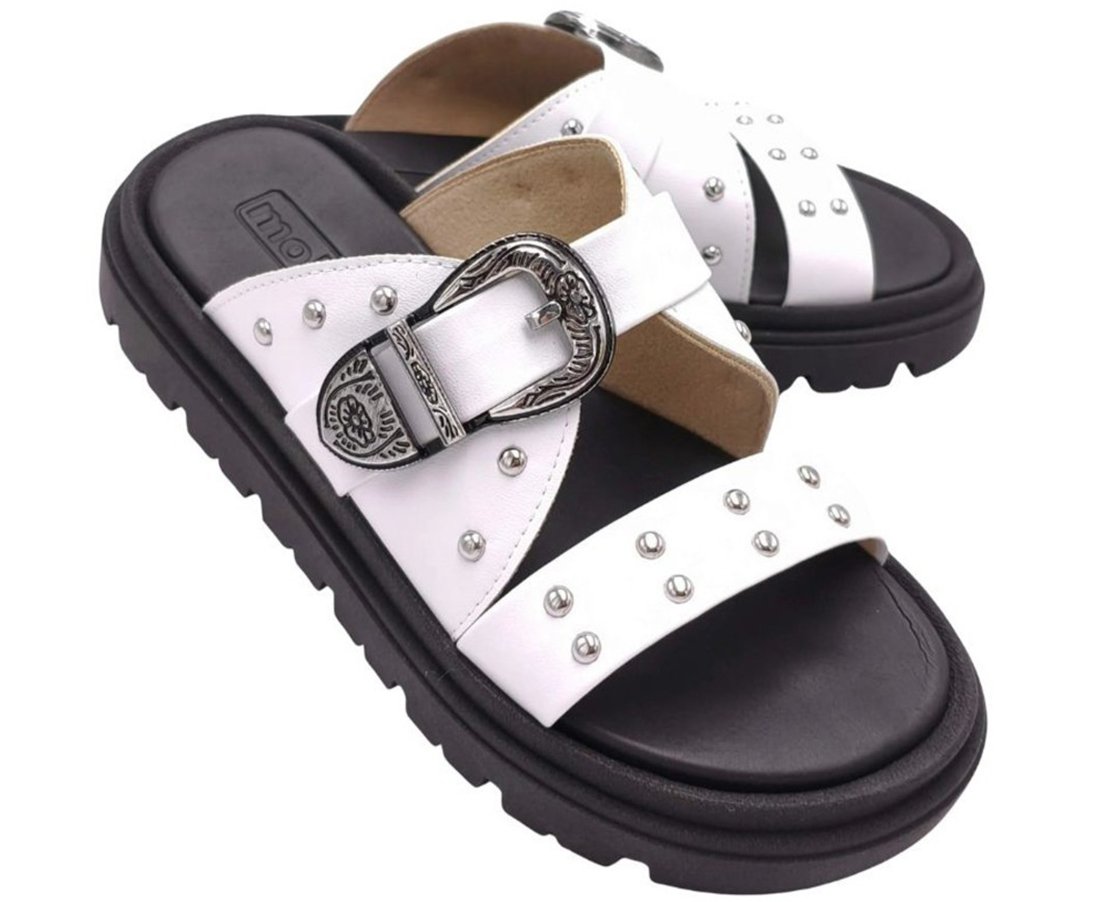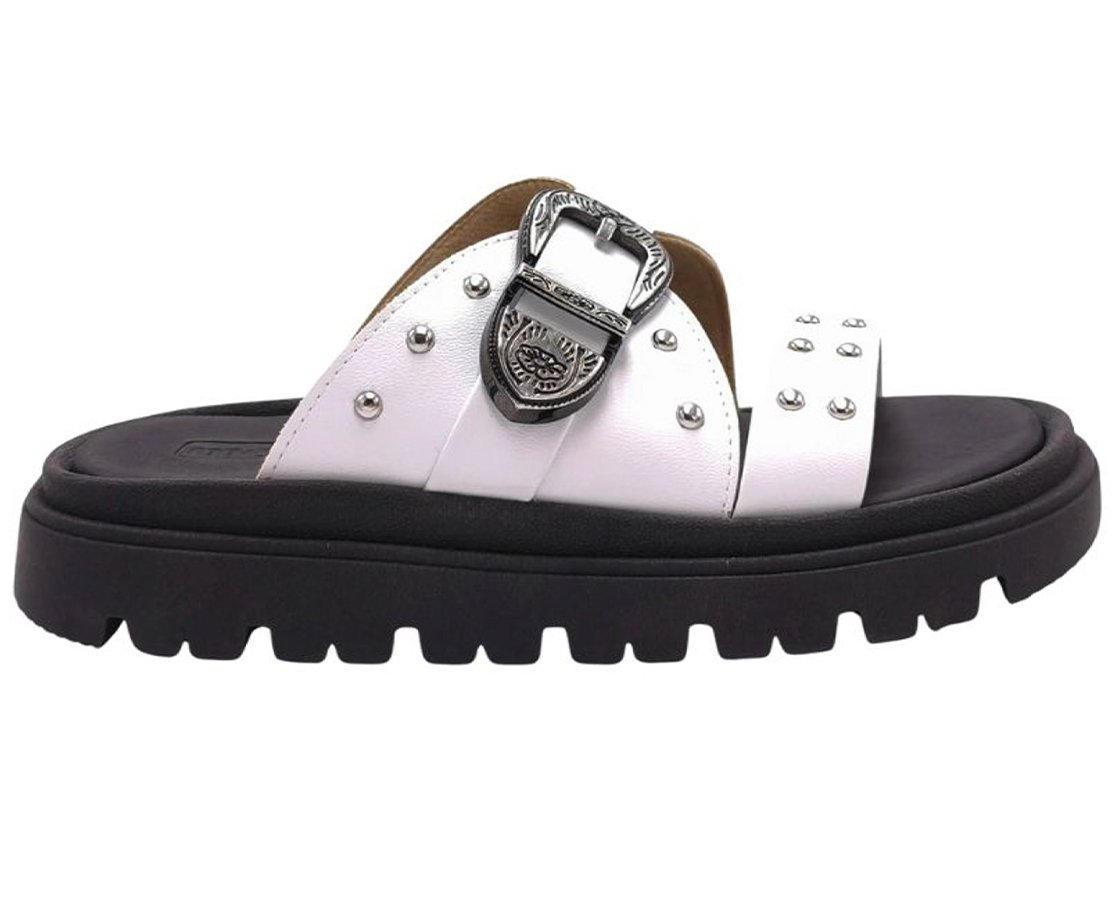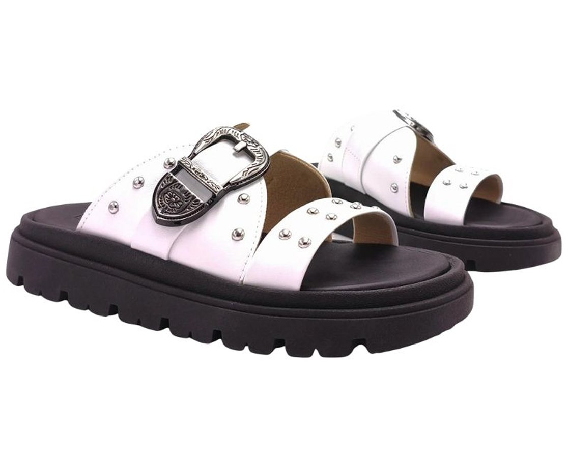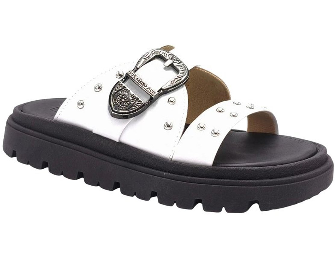 - Detalhes de Personalidade: As tachas aplicadas nas tiras largas adicionam personalidade e um toque fashion ao modelo.