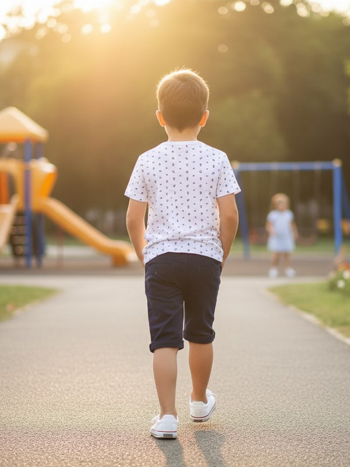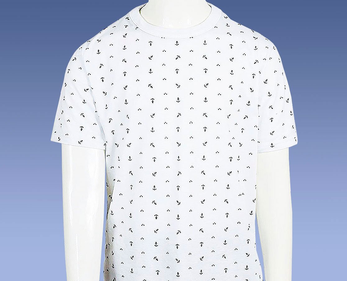 Conjunto Infantil de camiseta em malha de algodão e bermuda sarja. A camiseta possui estampa de âncora por toda sua extensão e decote redondo. Já a bermuda na cor azul marinho, com bolso na parte frontal e barra dobrada, forma um look despojado e estiloso