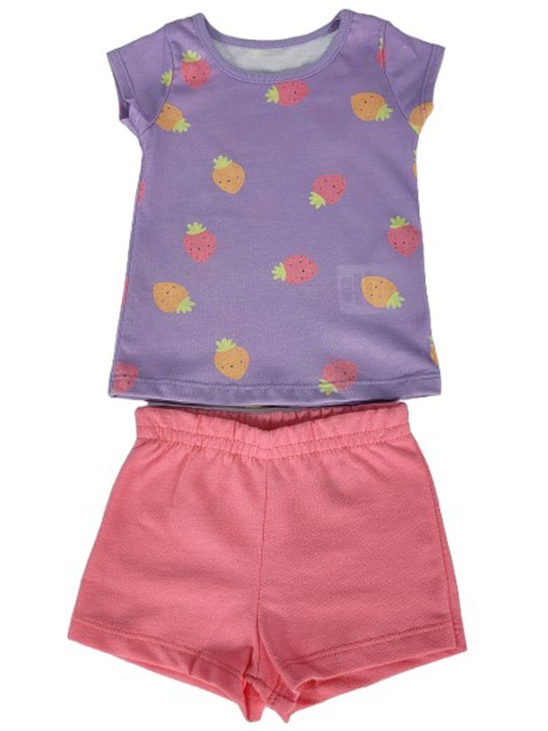 Conjunto Blusa e Shorts Estampado Feminino Bebê 26850 Brandili Lilás e Rosa
