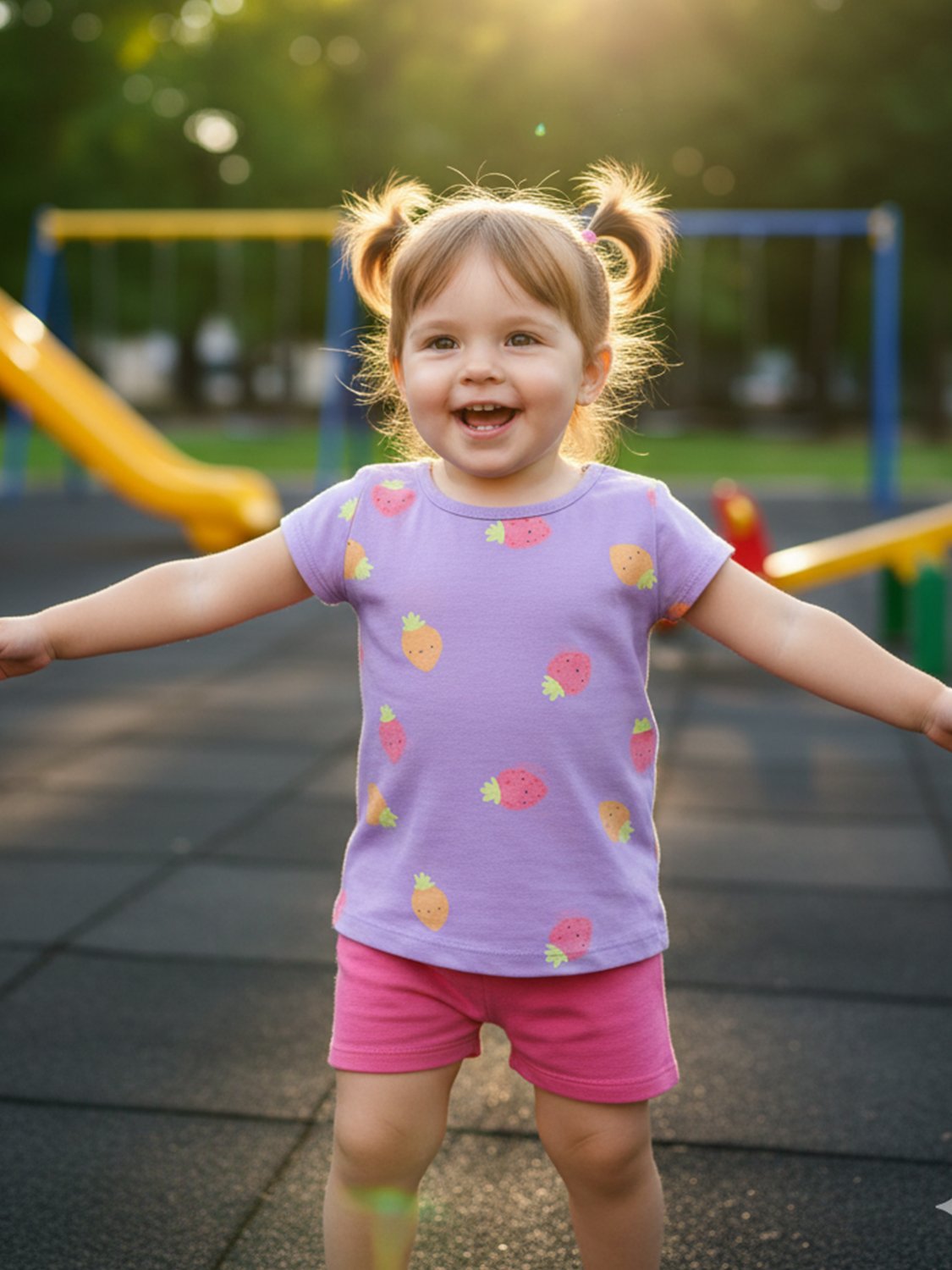 O Conjunto Bebê Feminino Brandili é ideal para os dias quentes, combinando conforto, delicadeza e estilo. Confeccionado em meia malha 100% algodão, garante toque macio e fresquinho para a pele sensível da sua pequena. A blusa traz uma estampa rotativa de moranguinho, cheia de charme, enquanto o shorts liso, sem estampa, conta com cós com elástico, proporcionando praticidade e conforto durante as brincadeiras. Uma opção versátil para deixar sua bebê ainda mais charmosa em todos os momentos.