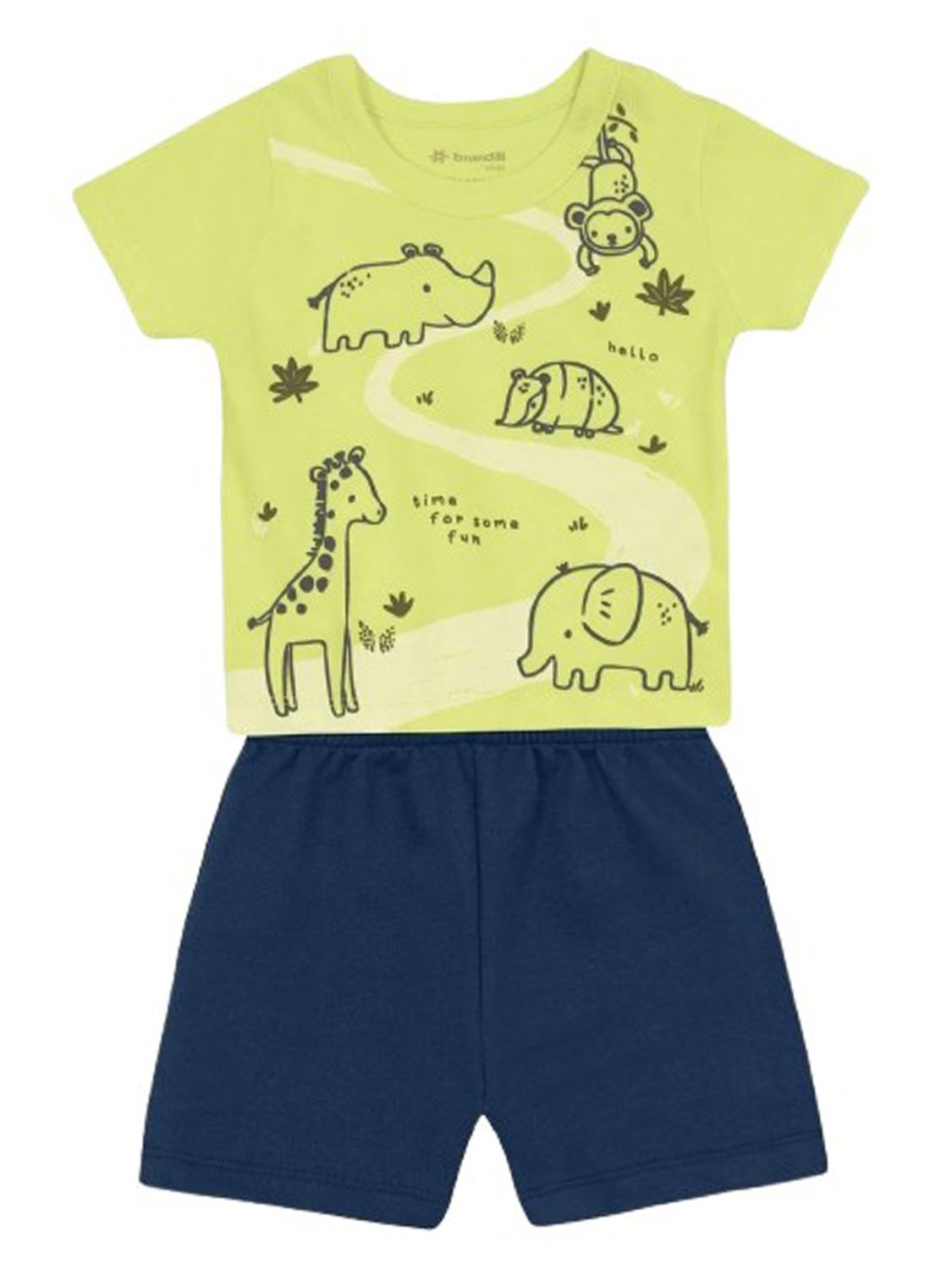 Conjunto Camiseta e Bermuda Masculino Infantil 1/3 26842 Brandili Verde Limão e Marinho