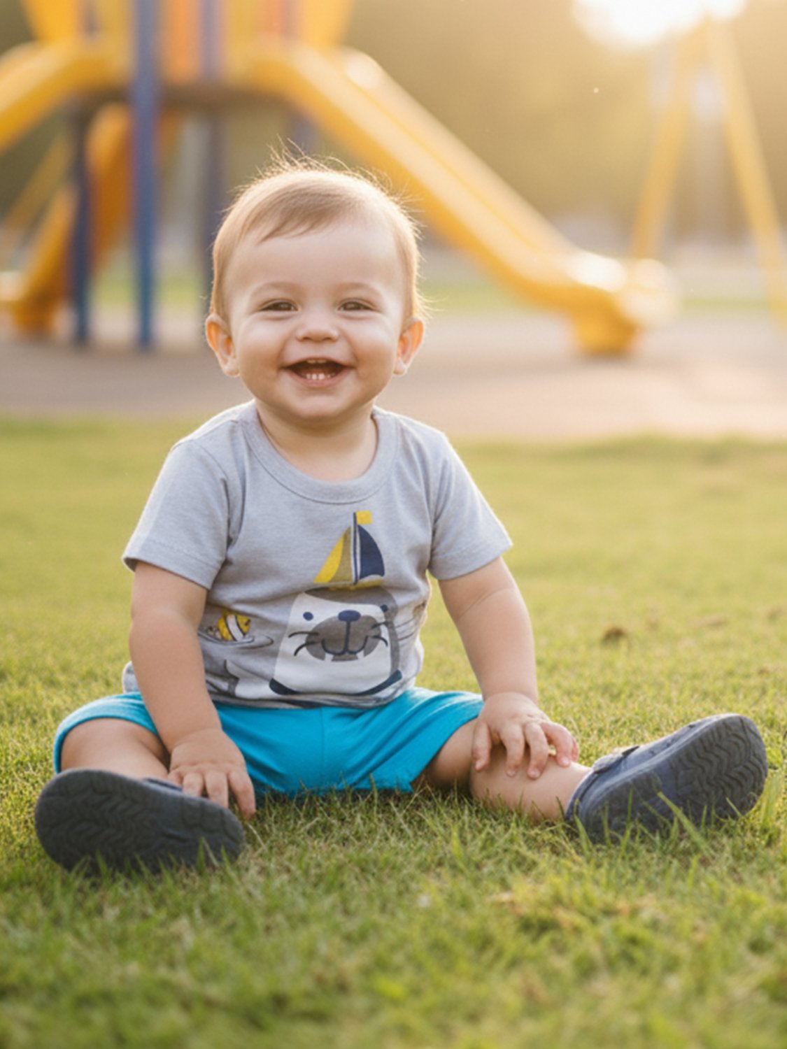 Conjunto Curto Masculino Bebê Camiseta E Bermuda Com Estampa Foca 35309 Brandili Cinza E Azul