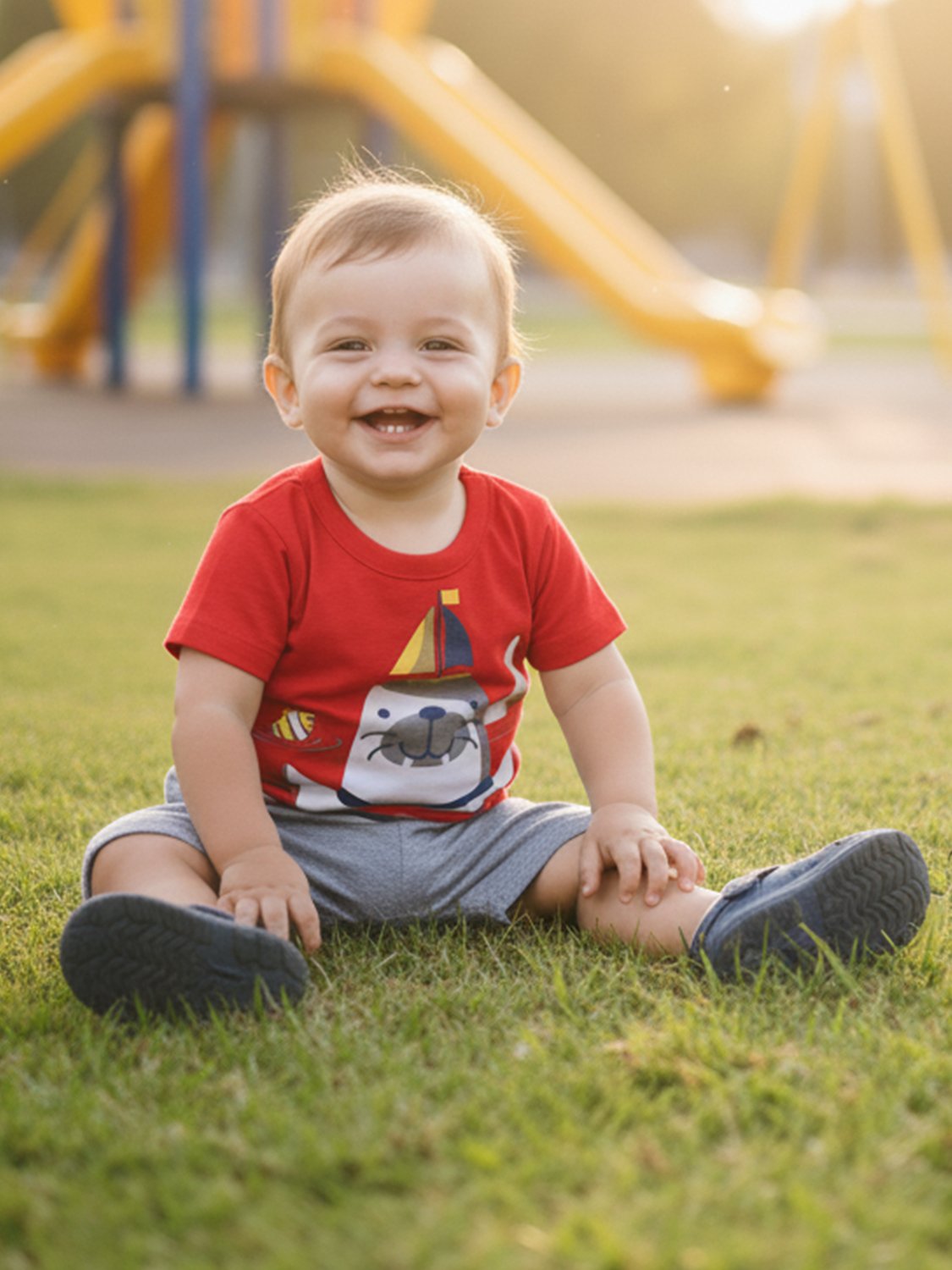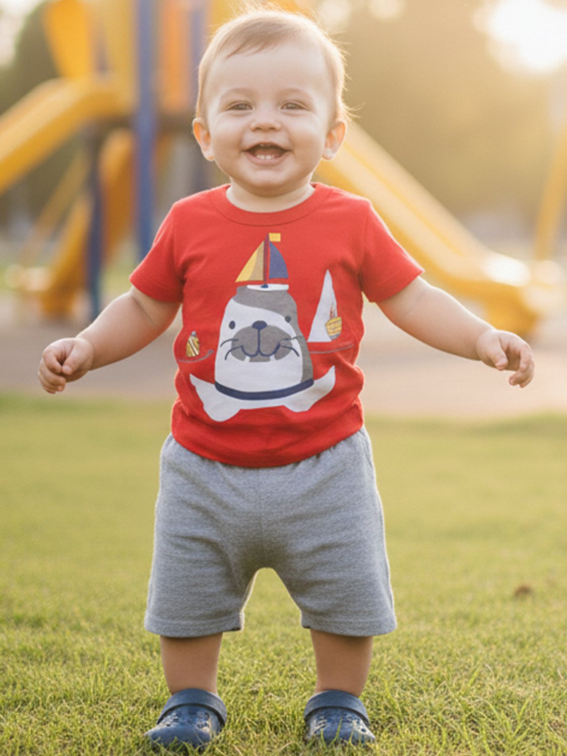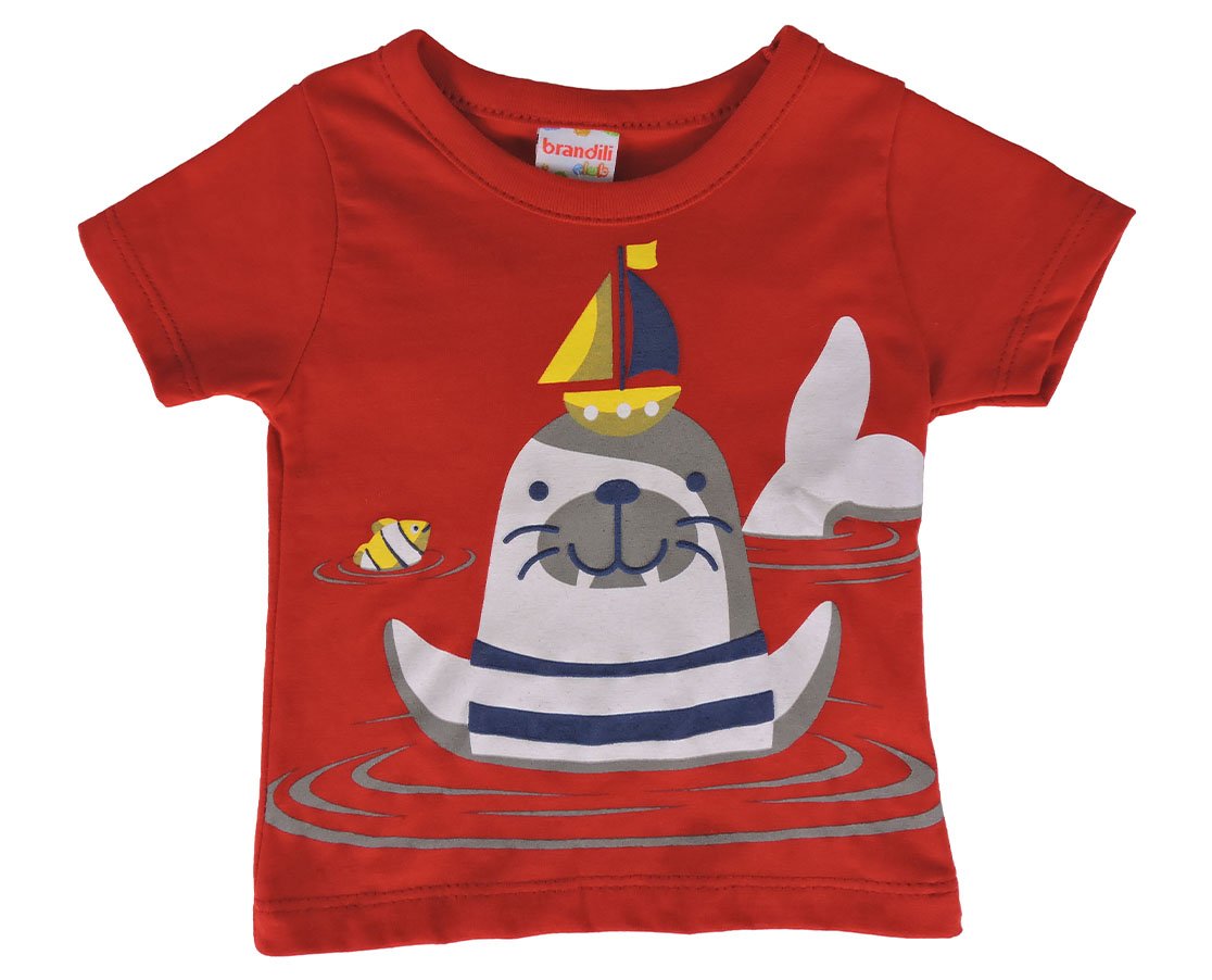 Conjunto Curto Masculino Bebê Camiseta E Bermuda Com Estampa Foca 35309 Brandili Vermelho E Mescla