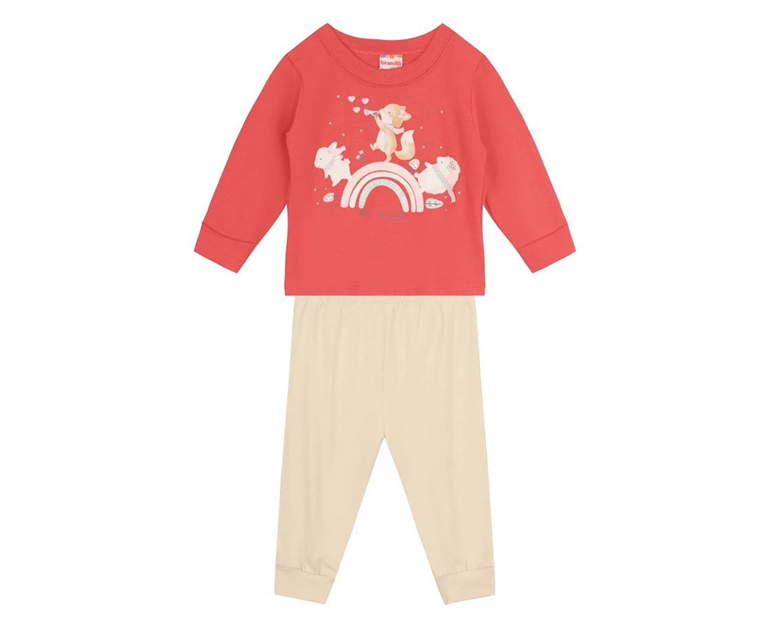 Conjunto Brandili Feminino Infantil, composto por blusão e calça. Ambos confeccionados em moletom peluciado de algodão super macio e quentinho. O Blusão possui manga longa com punho, gola redonda, uma linda estampa de arco-íris com glitter. A calça de cor lisa modelo jogger, com elástico no cós e punho na barra. Perfeito para os dias mais amenos, garantindo conforto e muito estilo para as pequenas!