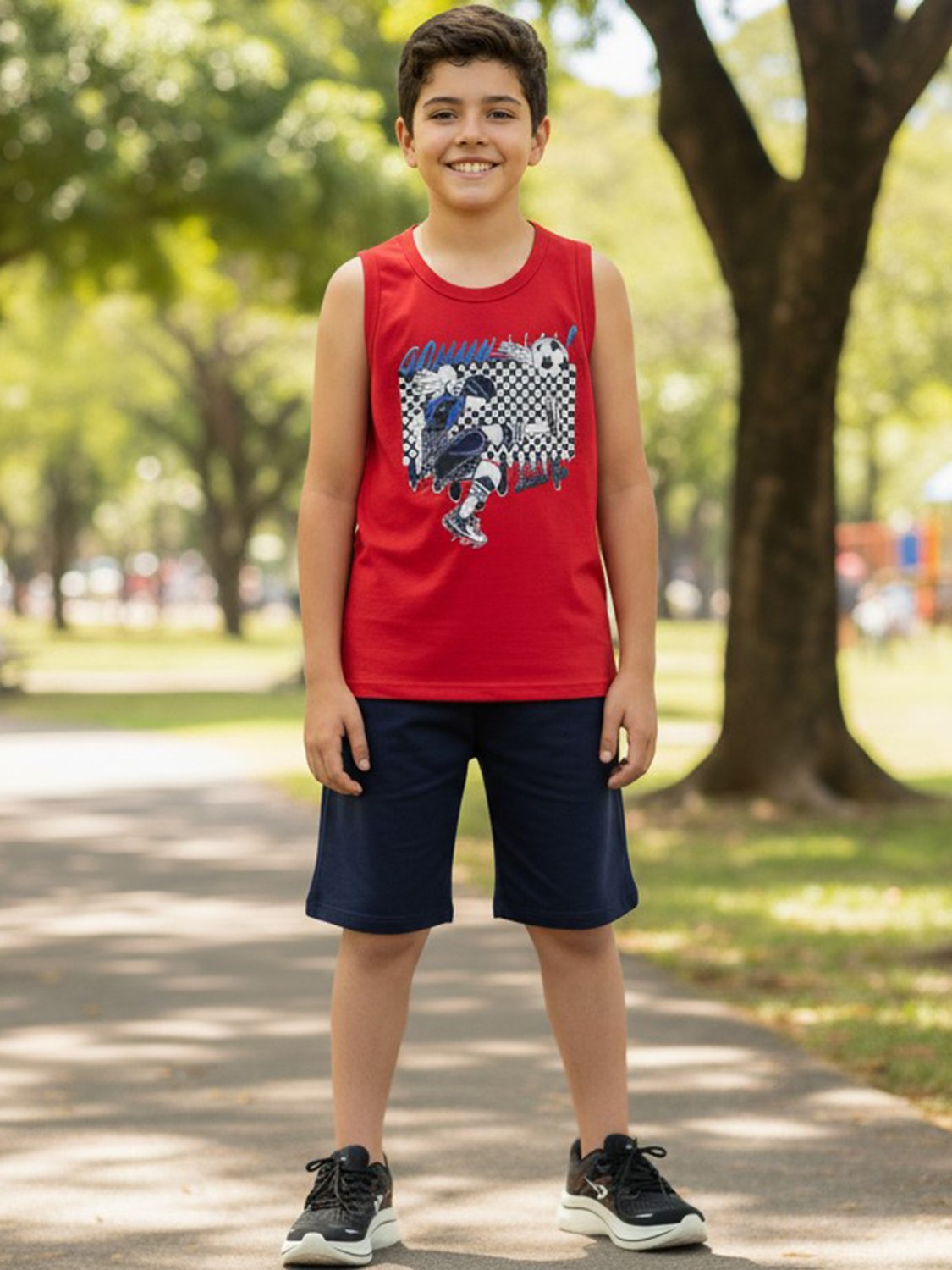 O Conjunto Masculino Infantil da Malwee Kids é ideal para os dias quentes e cheios de diversão! Confeccionado em 100% algodão macio, garante leveza, respirabilidade e conforto durante todo o dia. Com estampa divertida, a regata traz decote redondo e estampa divertida, que adiciona charme e estilo ao visual. Já a bermuda lisa possui cós com elástico, oferecendo ajuste perfeito e praticidade para acompanhar todas as brincadeiras. Um conjunto versátil e confortável, perfeito para passeios e momentos de lazer. Seu caimento levemente ajustado valoriza o corpo sem perder a liberdade de movimento.