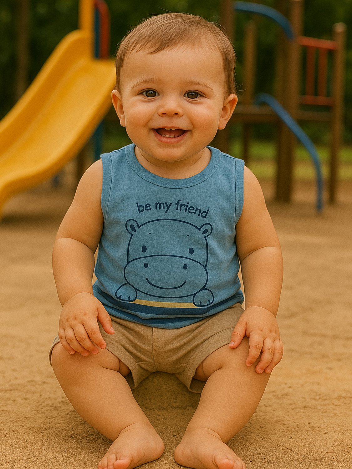 Deixe seu pequeno estiloso e confortável com o conjunto bebê menino da Brandili! Composto por uma regata em meia malha, traz uma divertida estampa cheia de charme e diversão. Acompanhando a regata, a bermuda em moletinho possui cós elástico, garantindo conforto e total liberdade de movimento para as aventuras do dia a dia. Ideal para os dias quentes, esse conjunto é perfeito para passeios e brincadeiras, podendo ser combinado com tênis e boné para um visual descolado e moderno.