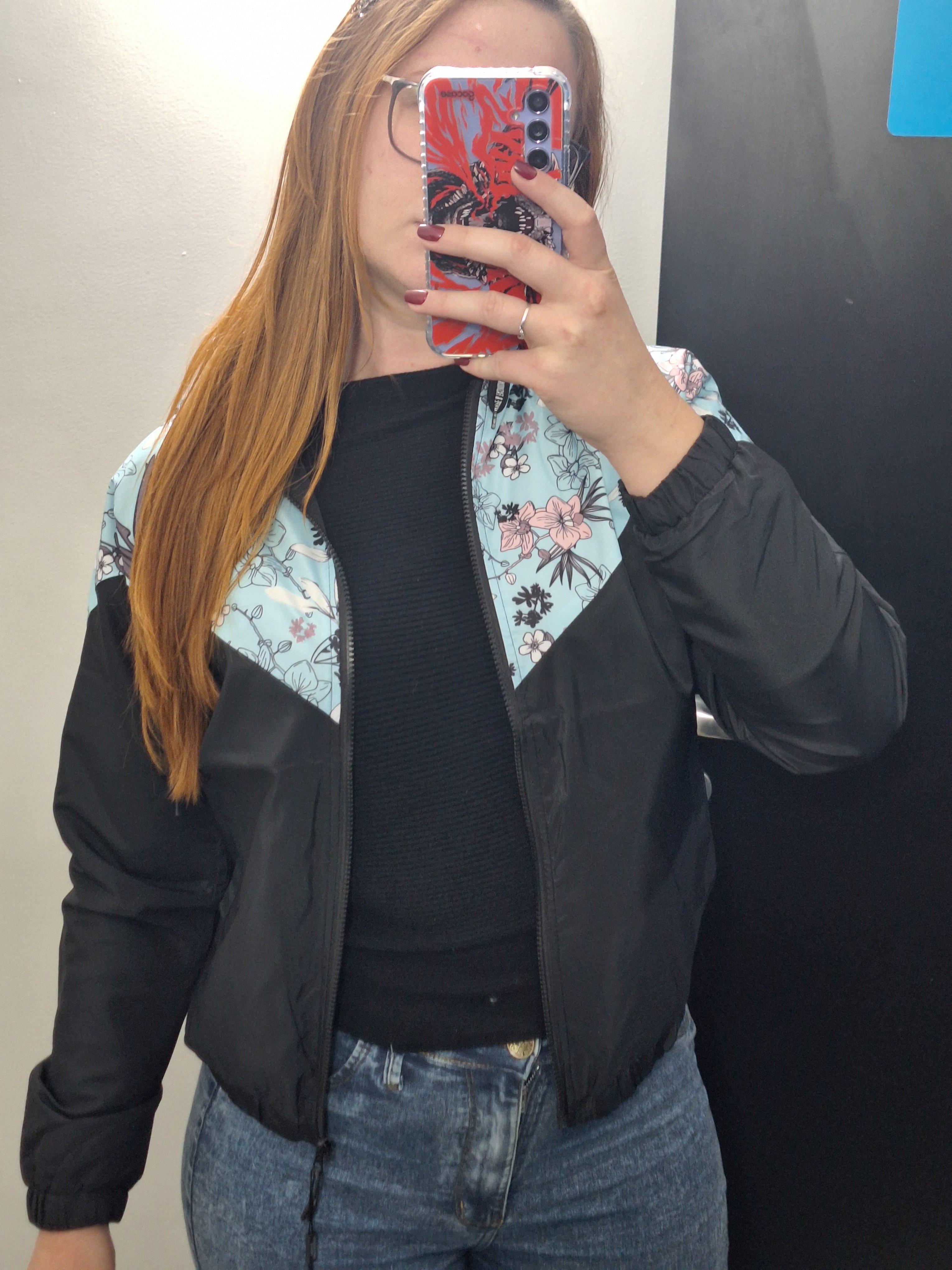 Jaqueta corta vento feminina, confeccionada em poliéster. A peça possui forro, elástico nos punhos e barra, fechamento por zíper, bolsos frontais com zíper, capuz ajustável por cordões estampados com a escrita ''Fashion & Overcore & New Hype" e estampa floral. O Corta Vento é ideal para dias frios podendo compor looks casuais e esportivos. Aposte!