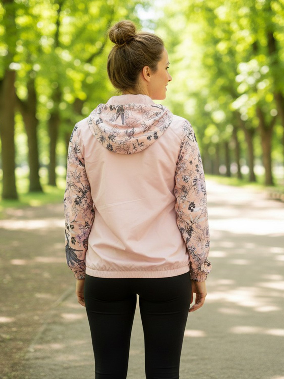 Jaqueta corta vento feminina, confeccionada em poliéster. A peça possui forro, elástico nos punhos e barra, fechamento por zíper, bolsos frontais com zíper e capuz ajustável por cordões estampados com a escrita ''Fashion & Overcore & New Hype". A jaqueta possui detalhes florais nas mangas e capuz. Corta Vento é ideal para dias frios podendo compor looks casuais e esportivos. Aposte!