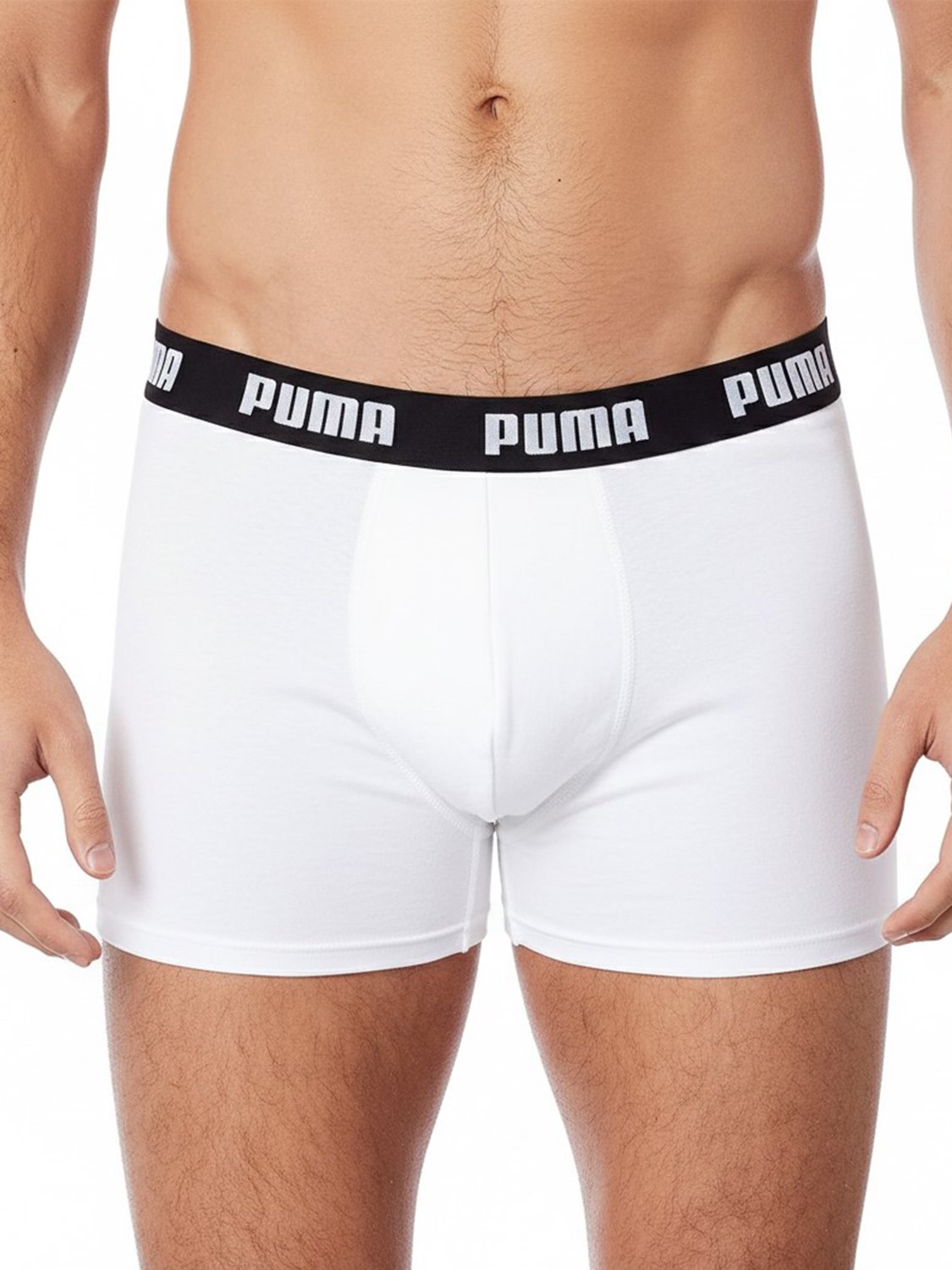 - Cintura Marcante: Apresenta um elástico largo e personalizado com o nome da marca em destaque. Como visto na versão branca, o elástico preto cria um contraste moderno com o logotipo "PUMA" em branco.