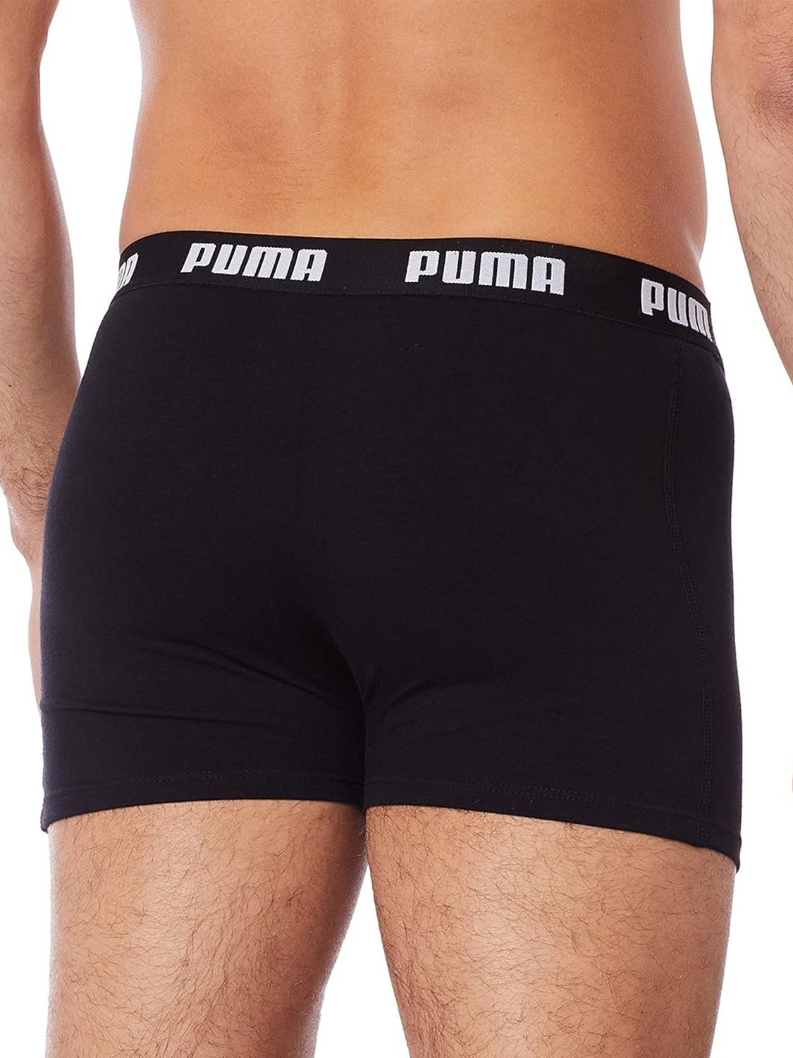 - Cintura Marcante: Apresenta um elástico largo e personalizado com o nome da marca em destaque. Como visto na versão preto, o elástico preto cria um contraste moderno com o logotipo "PUMA" em branco.