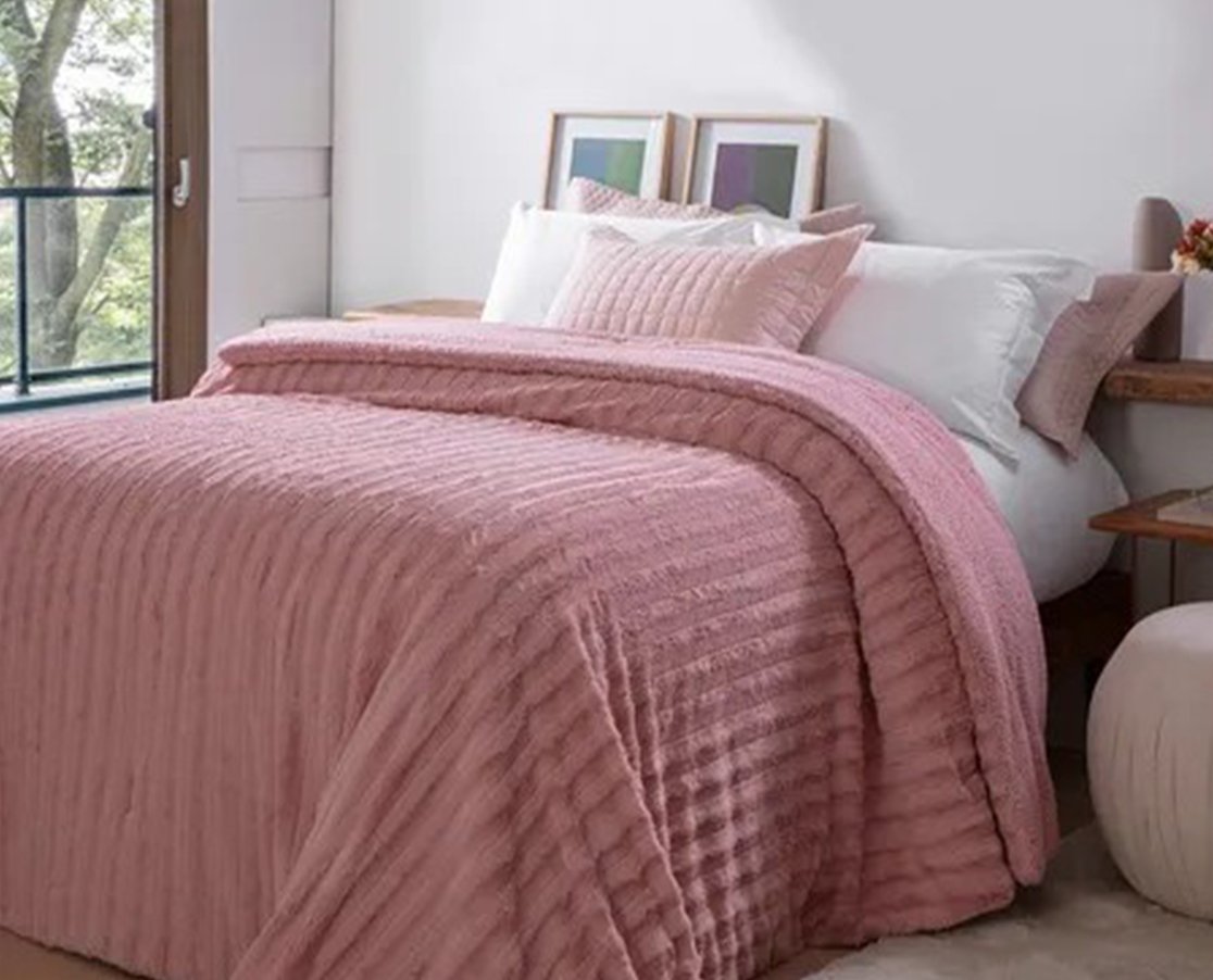 Edredom Super King Dupla Face Hipoalergênico 240x260 Visón Jolitex Rosa