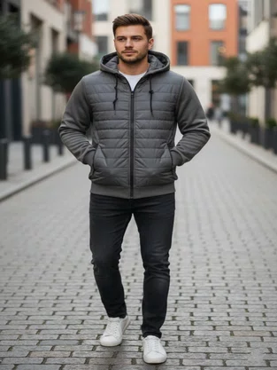 A Jaqueta Masculina Blue Bay (Ref. JMH203) é a escolha perfeita para quem busca uma peça que une o estilo urbano ao máximo conforto térmico. Seu design híbrido combina diferentes texturas e materiais, criando um visual contemporâneo e funcional para os dias mais frios.