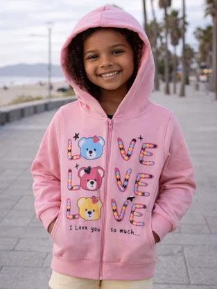 Jaqueta De Moletom C/Capuz Feminina Infantil Analê Rosa