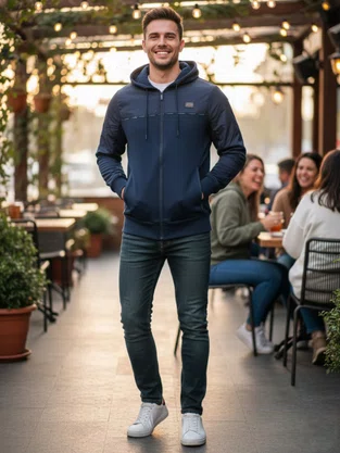 Jaqueta de Moletom com Nylon Masculina confeccionada em poliéster e algodão. Apresenta capuz com cordão para ajuste e amarração, manga longa com punho, fechamento frontal por zíper, dois bolsos na parte da frente. Possui recorte na parte frontal e mangas em nylon, costuras duplas de segurança na parte interna e externa . As jaquetas são peças essenciais no guarda roupa masculino. Esse modelo de jaqueta permite montar várias composições e estilos por ser clássica, básica e versátil. Garanta a sua e arrase!!