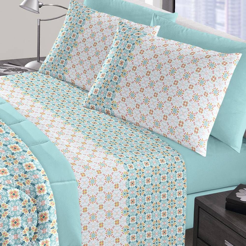 Jogo De Cama King Duplo 4 Peças Royal Plus Santista Cloe Verde Água