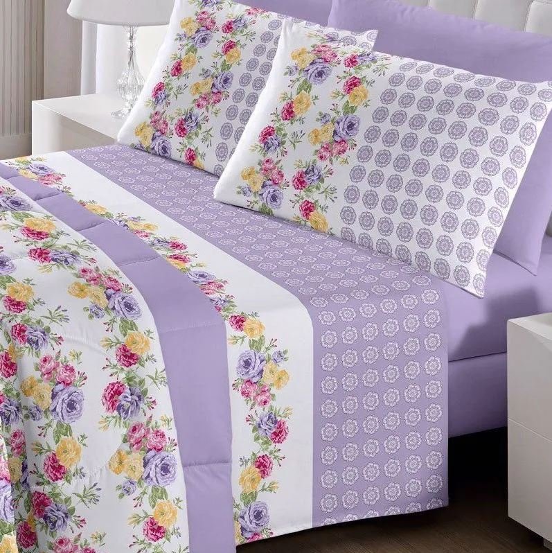Jogo De Cama King Duplo 4 Peças Royal Plus Santista Susi Lilás