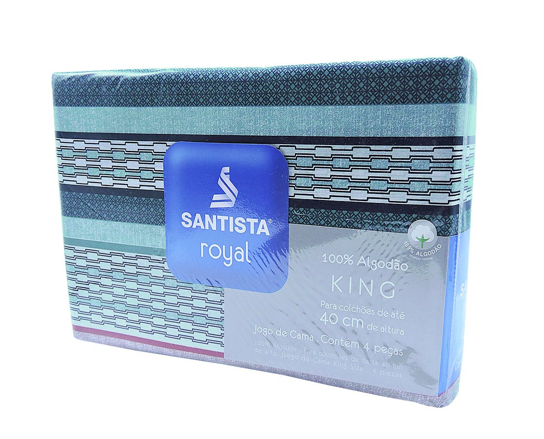 Jogo De Cama King Duplo 4 Peças Royal Plus Santista Wolf Azul