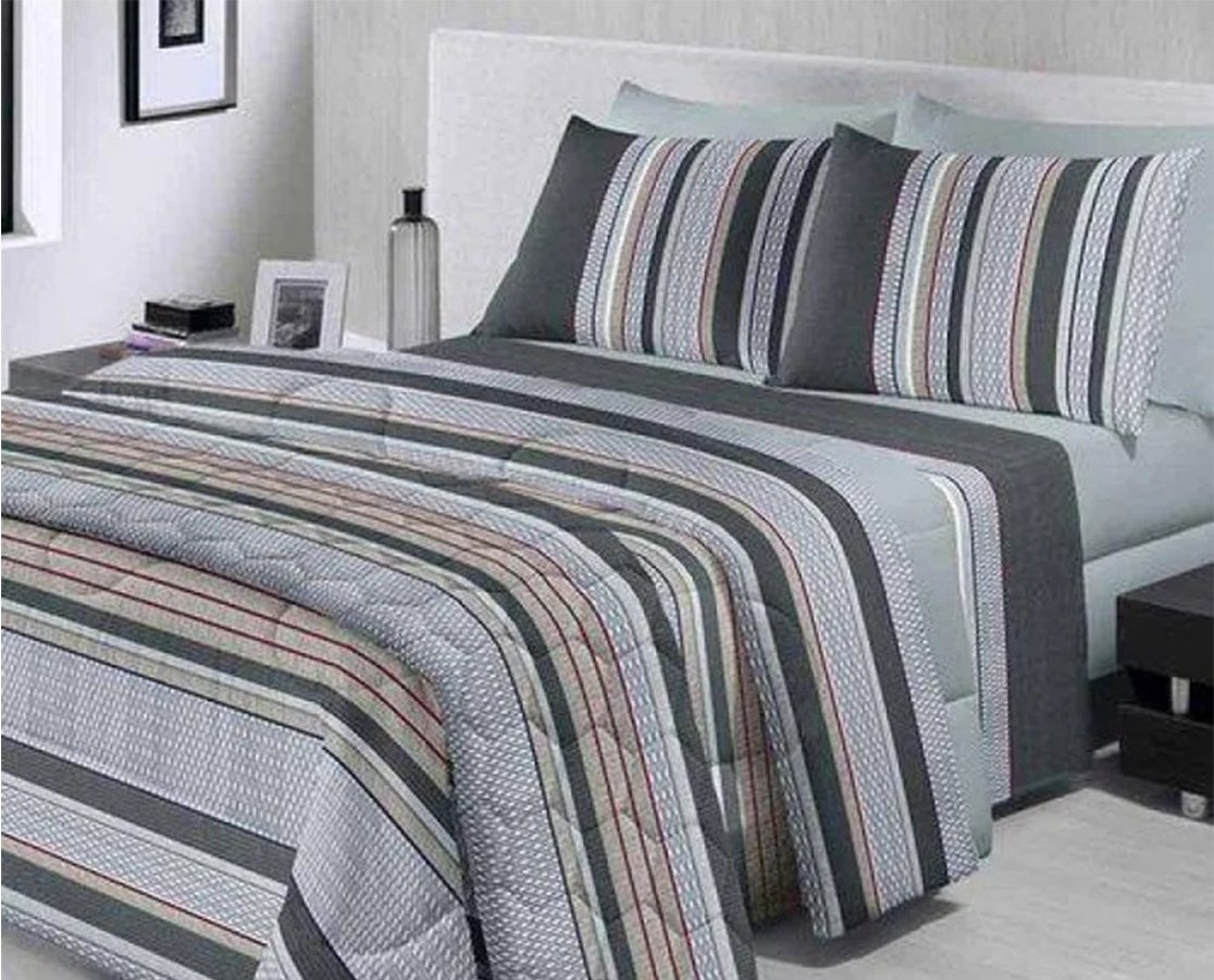 Para uma decoração moderna e com cores neutras, aposte no jogo de lençol Wolf. Ele tem estampa com texturas e tons sóbrios, além de ser confeccionado em tecido 100% algodão, que proporciona ainda mais conforto e maciez para suas noites. Tanto os pés quanto as cabeceiras do conjunto possuem um acabamento que chamado de ourela. Essa é uma finalização que corta os fios na mesma direção do comprimento da peça e evita que ela desfie. O tampico da fronha é acabado com bainha.