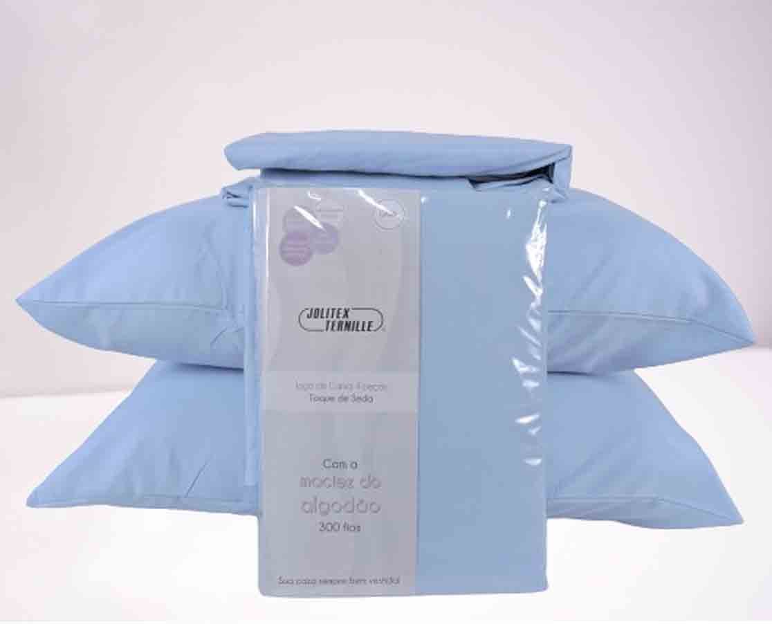 Jogo de Cama Casal 04 Peças 300 Fios Toque de Seda 1,38 X1,88m Jolitex Azul