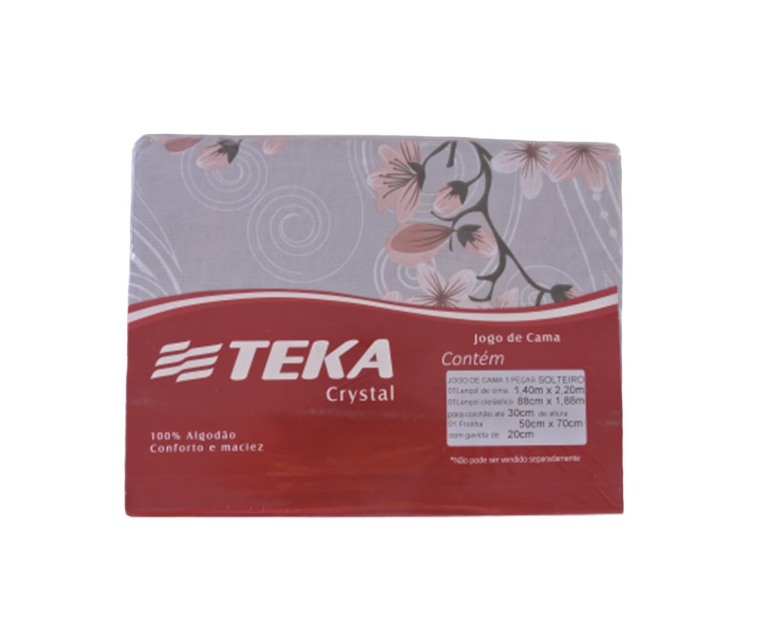 Jogo de Cama de casal, 4 peças Teka Crystal. Confeccionado em 100% algodão , tecido estampado. Composto por: 1 lençol de cima, 1 lençol com elástico e 2 fronha. Perfeito para deixar seu ambiente ainda mais aconchegante, unindo beleza e conforto do toque macio proporcionado pelo o algodão.