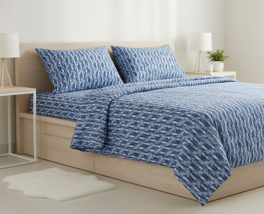 O Jogo de Cama Altenburg Belong Queen 4 peças ,traz elegância, conforto e qualidade incomparável para o seu quarto. Com padronagem de listras em tons de azul, o modelo combina uma estética gráfica contemporânea com um toque sofisticado, criando uma atmosfera moderna e acolhedora na decoração.