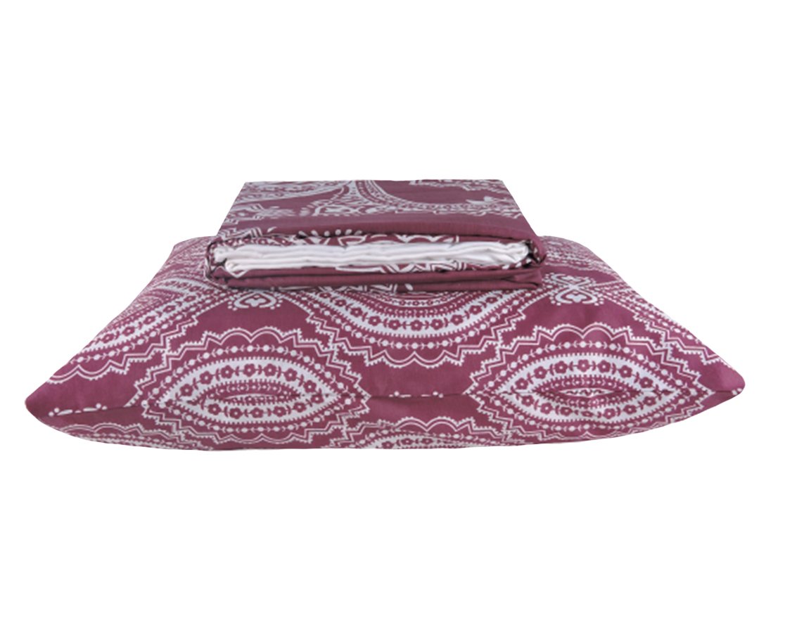 Jogo De Cama Solteiro Com 3 Peças 1.40x2.20 30 cm Estampado Teka Bagda Vinho E Branco