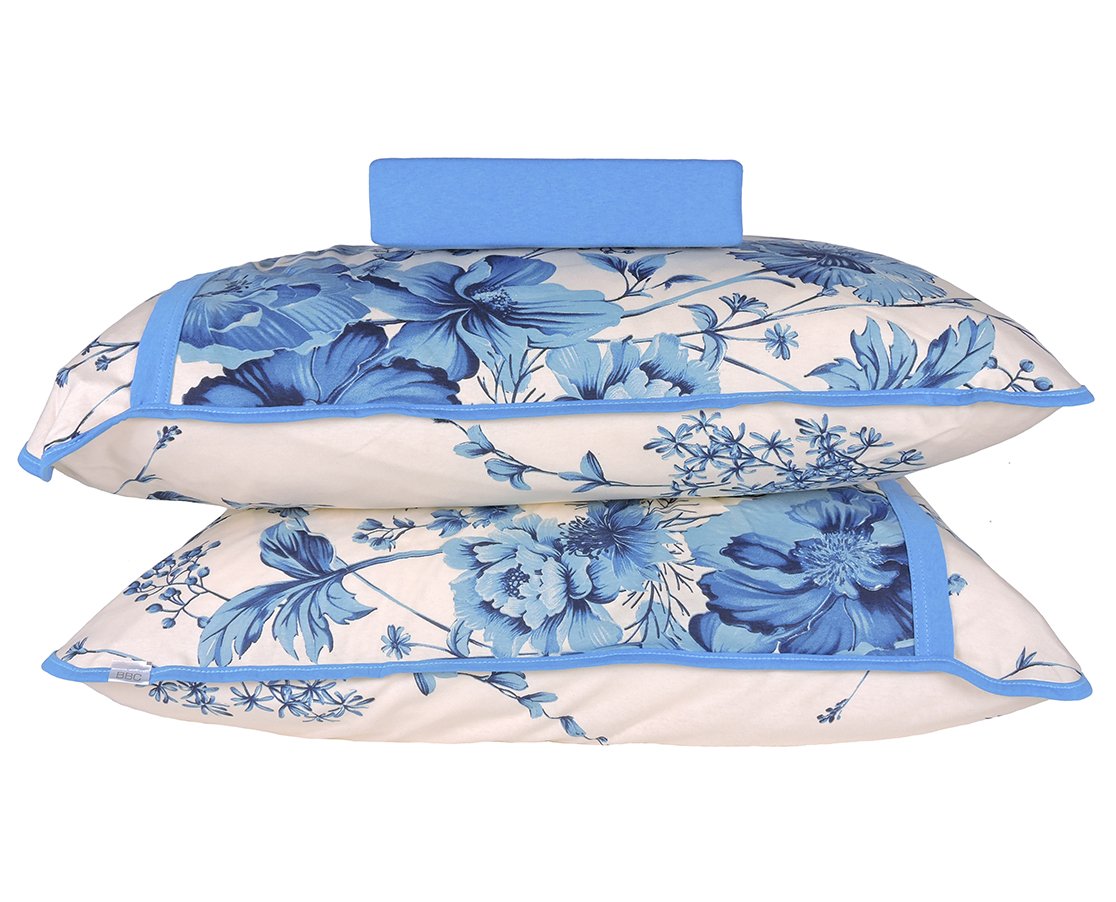Jogo De Lençol 3 Peças King De Malha 200 Fios 745 BBC Têxtil Creme E Azul