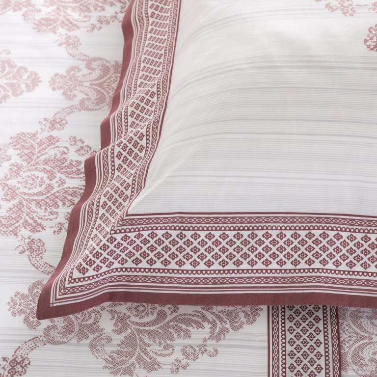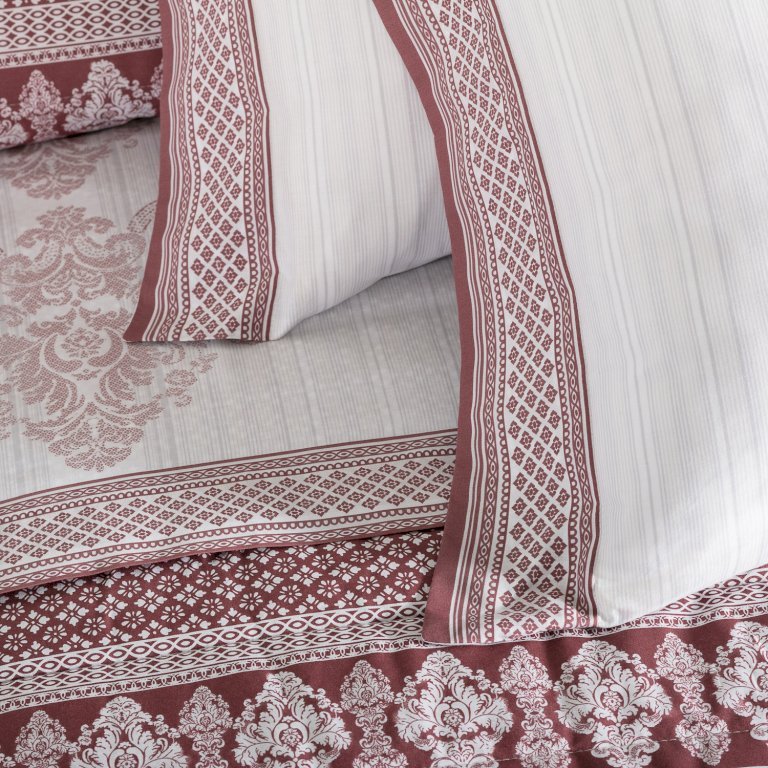 Jogo de lençol Casal é confeccionado em tecido de algodão Fio Penteado, Percalle 180 fios de admirável qualidade. Para colchão com altura até 35cm. A coleção Windsor foi inspirada nos elementos decorativos dos antigos castelos e palacetes da realeza europeia. Juntando a riqueza dos tradicionais desenhos arabescos com a delicadeza da gravataria e das listras finas, o resultado é sofisticado. A versão na cor mais colorida traz o contraste com o tom quente e aconchegante do vermelho. A fronha 3 abas com estampa localizada em moldura, lençol com elástico cor branca para colchão com altura até 35cm, sobrelençol tem acabamento com estampa localizada em moldura. Para quem procura qualidade e estilo este produto é a melhor opção.