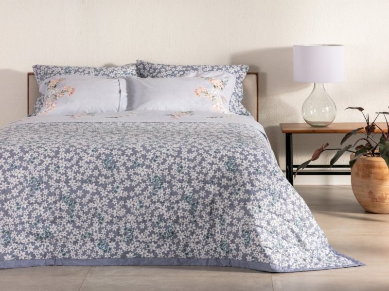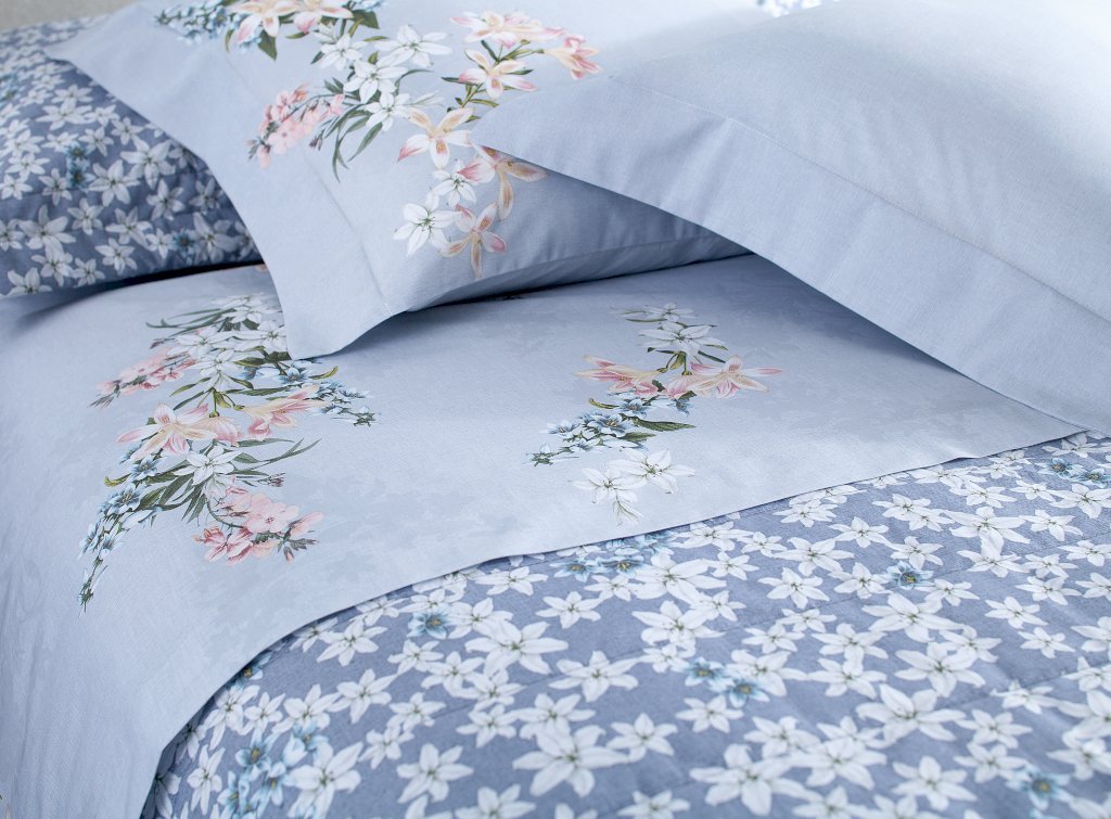 Jogo de lençol King Lirium é confeccionado em tecido 100% algodão Fio Penteado, Percalle 180 fios de admirável qualidade. Para colchão com altura até 40cm. A coleção Lirium é uma composição floral, criada especialmente para trazer leveza e frescor neste lançamento de verão. O sofisticado lírio é a flor protagonista, e vem acompanhada de florais pequenos com toques de azul. No sobrelençol, os buquês são espaçados para dar movimento, enquanto a sobreposição, entre desenho e sombra traz profundidade para a estampa rica em detalhes. A coloração passeia por tons delicados, com o fundo em diferentes tons de azul jeans e elementos em cores suaves. Em todas as peças, a textura enriquece e dá um ar contemporâneo para o jogo. Fronha 3 abas, lençol com elástico e estampa texturizada para colchão com altura até 40cm, sobrelençol tem acabamento com estampa. Para quem procura qualidade e estilo este produto é a melhor opção.
