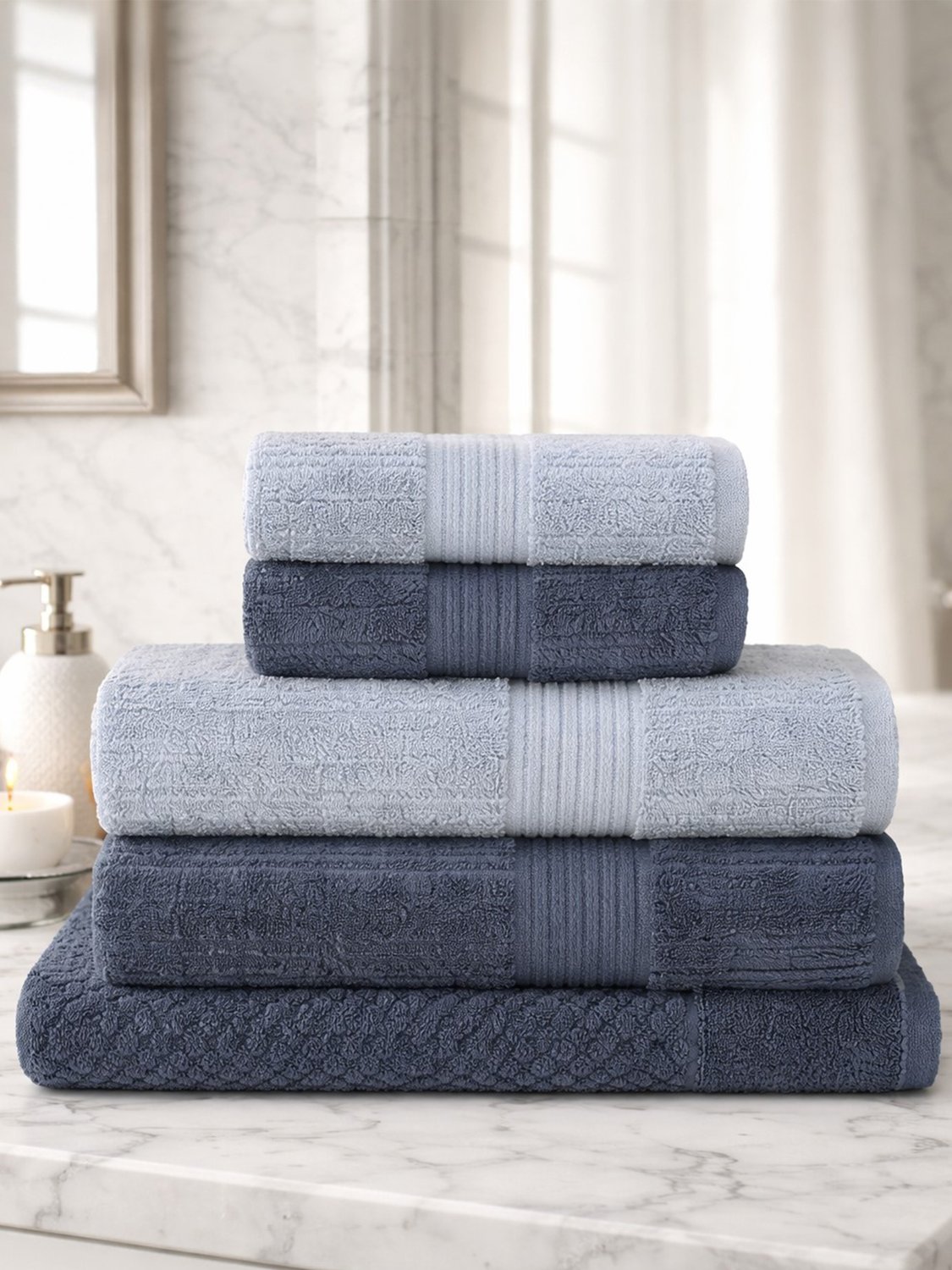 Jogo De Toalhas 5 Peças Fio Penteado e Canelado Buddemeyer Azul