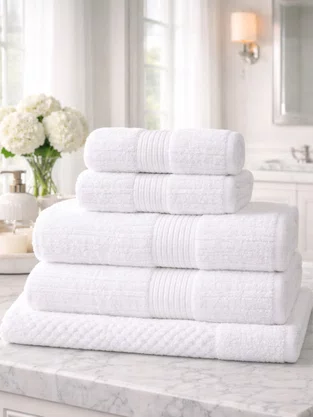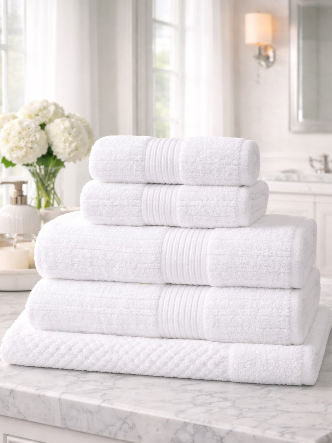 Jogo De Toalhas 5 Peças Fio Penteado e Canelado Buddemeyer Branco